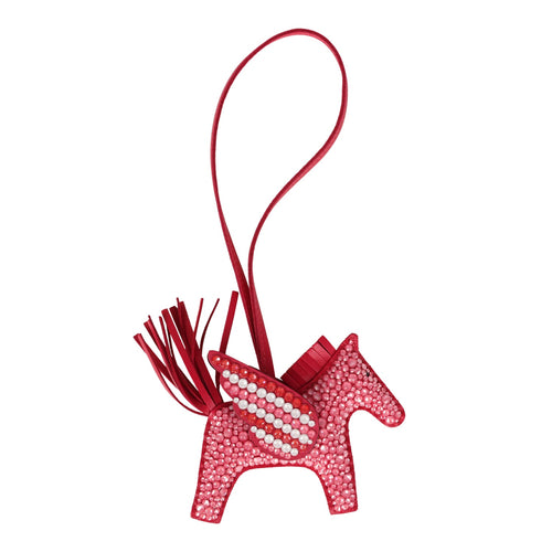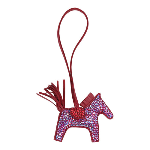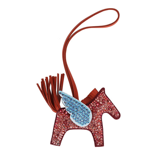 Custom Red Swarovski Crystal Hermès Bedazzled Pegase Rodeo Bag Charm PM Rouge Grenat/Bleu Brume/Cornaline Milo Lambskin