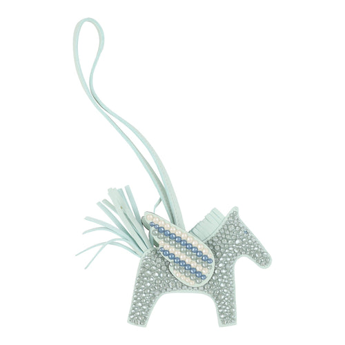 This Hermes Pegasus Rodeo bag charm PM is in Vert Peppermint swift and Milo lambskin leather and is accented with a Vert Peppermint mane, tail, eye and wings.This bag charm is beaded in light green, white, and light blue Swarovski...