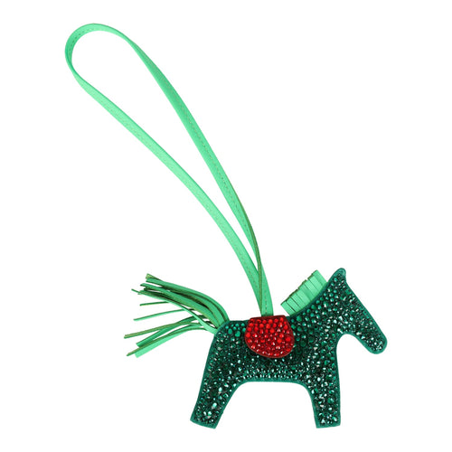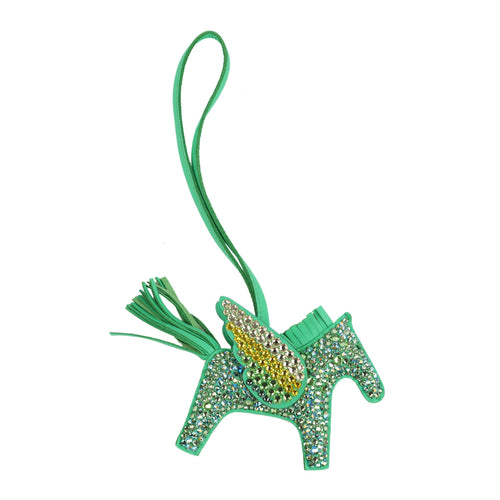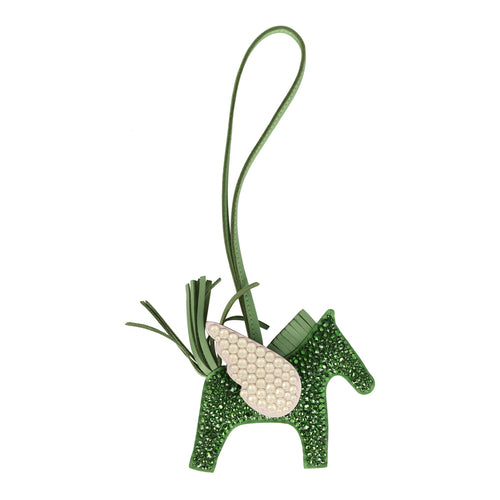 Custom Green Swarovski Crystal Hermès Pegase Rodeo Bag Charm PM Vert Comics Milo Lambskin