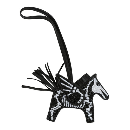 This Hermès Bedazzled "Skeleton" Pegasus Rodeo Bag Charm PM is in Black Swift and Milo lambskin leather and is accented with a Black mane, tail, eye and wings. This bag charm is beaded in Black and White Swarovski crystals with...