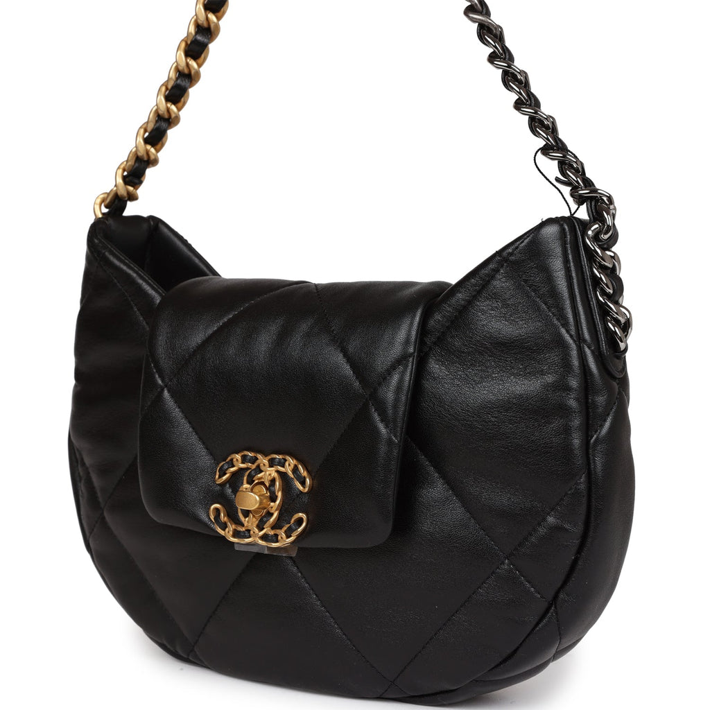 Chanel 19 Hobo Bag Black Lambskin Mixed Metal Hardware