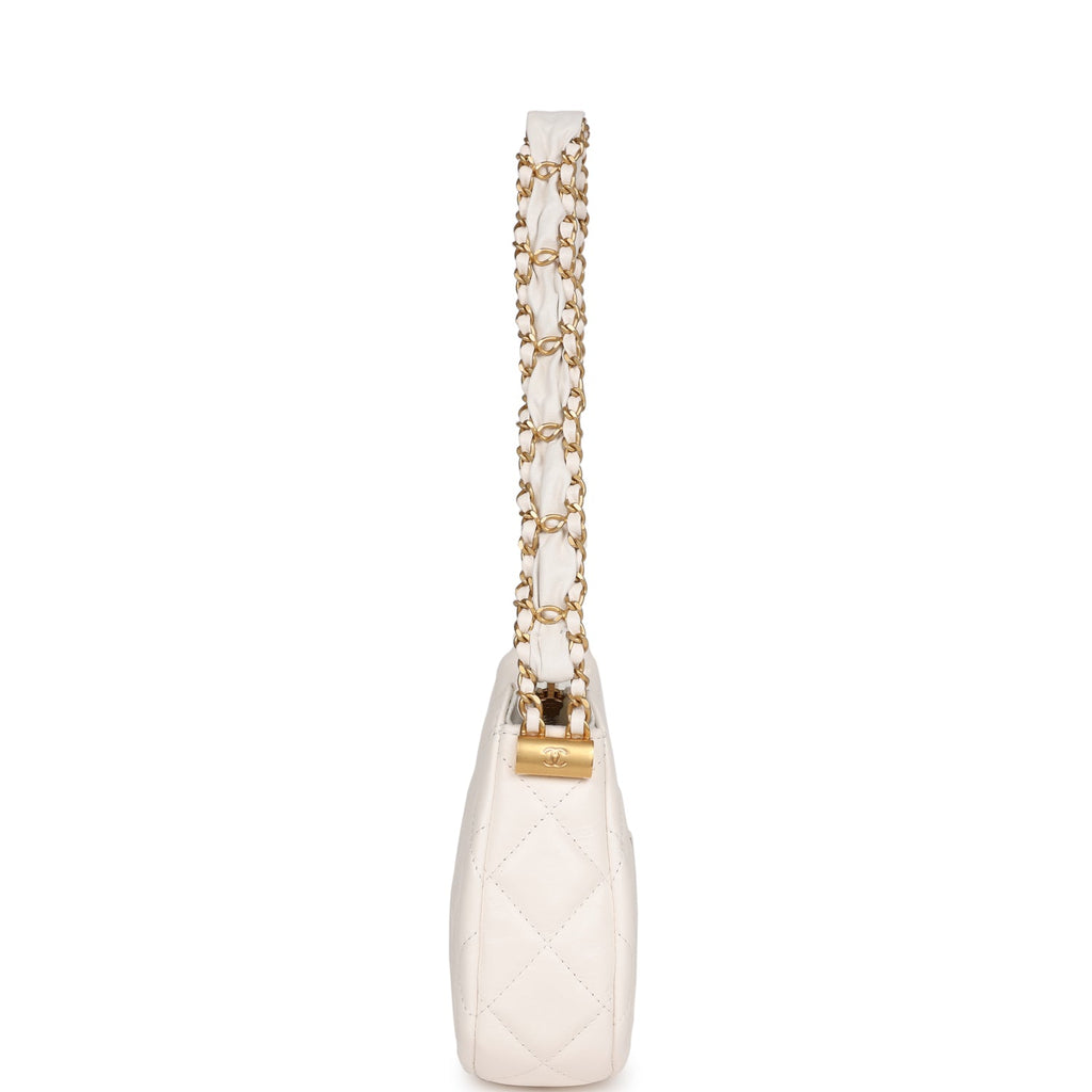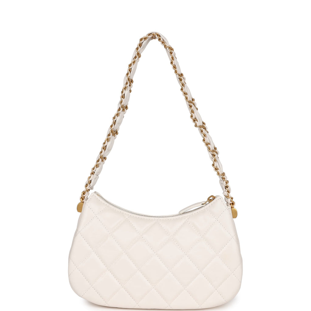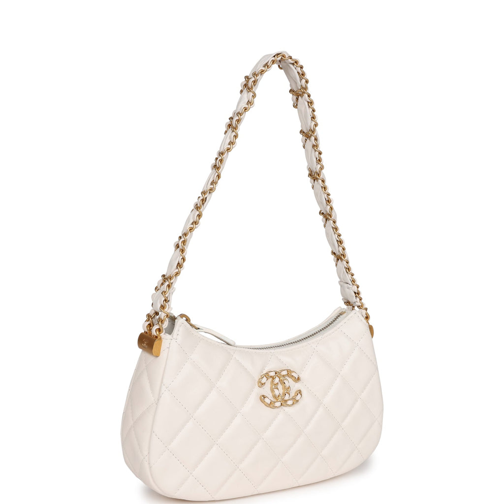 Chanel 19 Hobo Bag White Aged Calfskin Brushed Gold Hardware