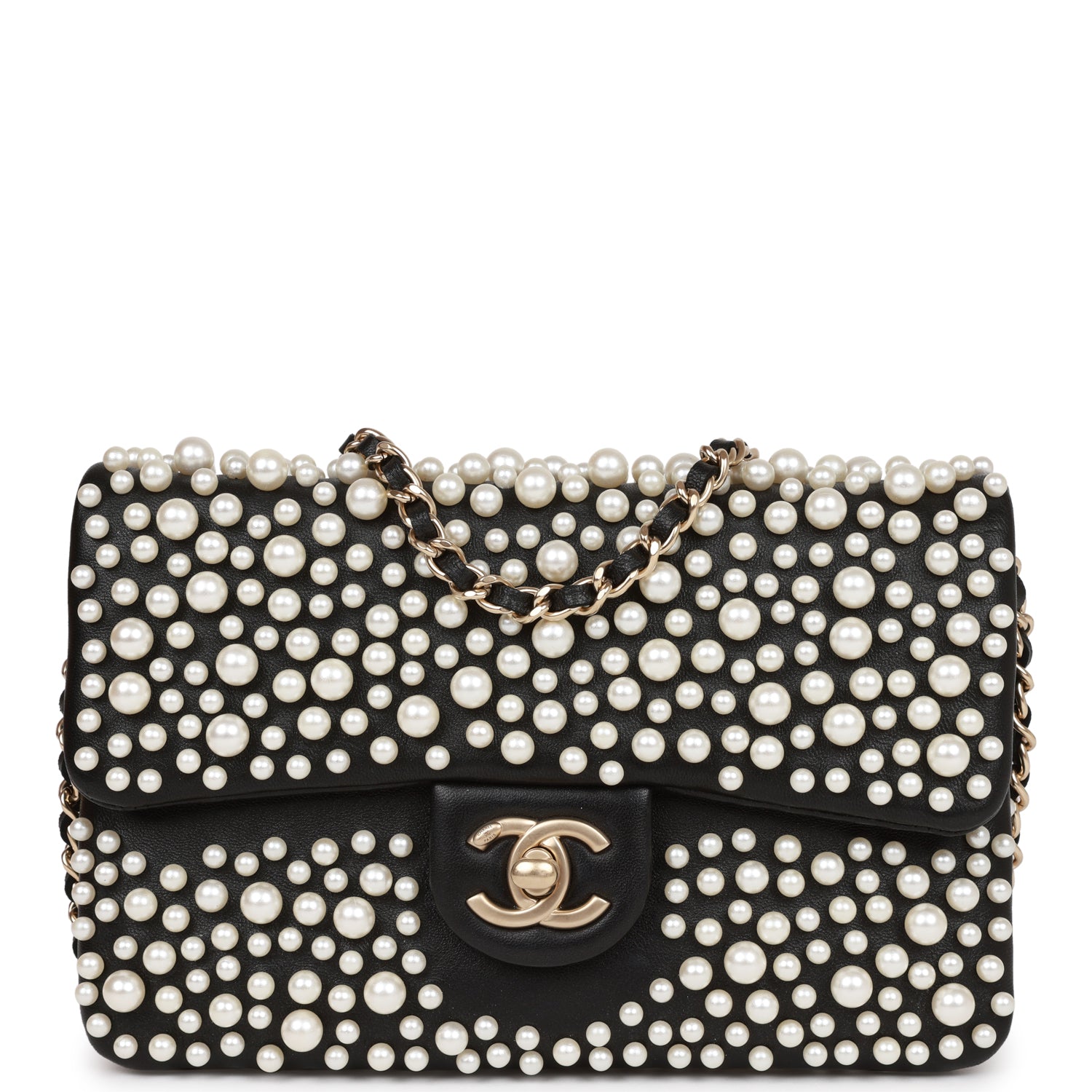 Chanel "Paris-Dubai" Pearly Flap Bag Black Lambskin Light Gold Hardware