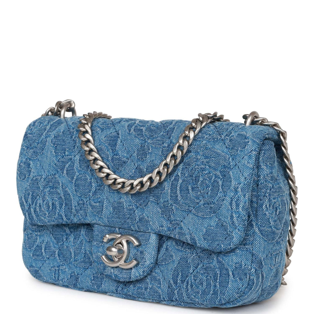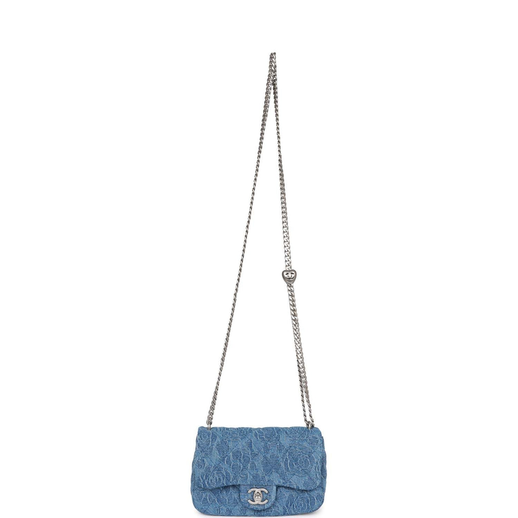 Chanel Mini Sweetheart Crush Flap Blue Camellia Denim Silver Hardware