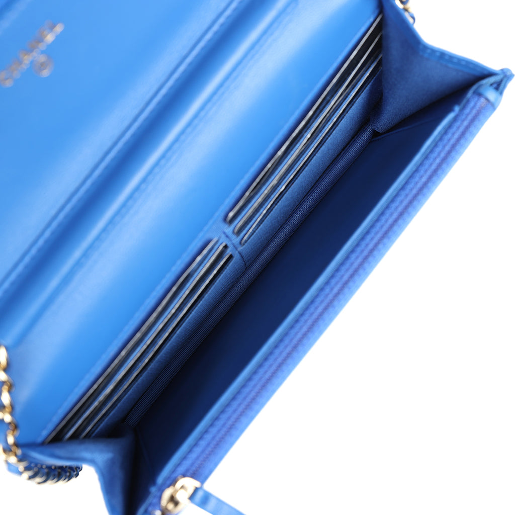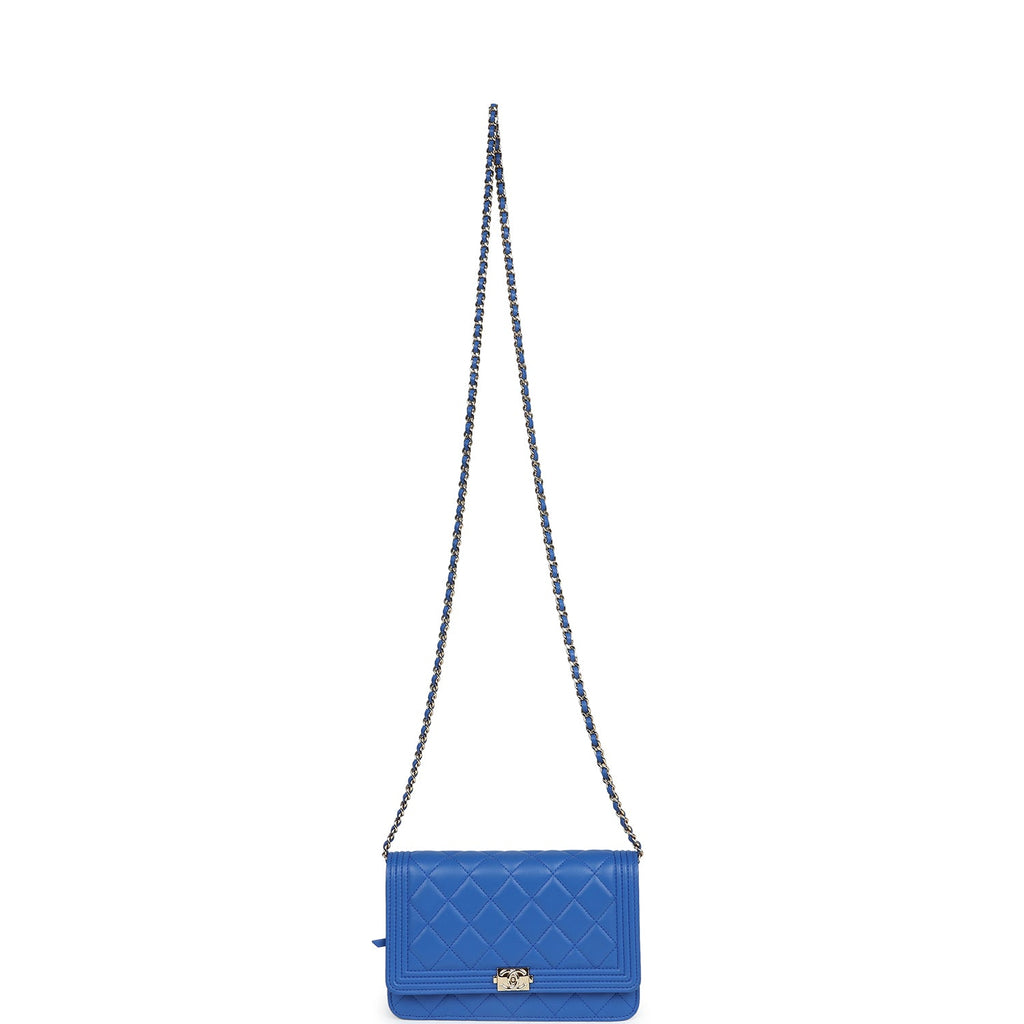 Chanel Boy Wallet On Chain WOC Electric Blue Lambskin Light Gold Hardware