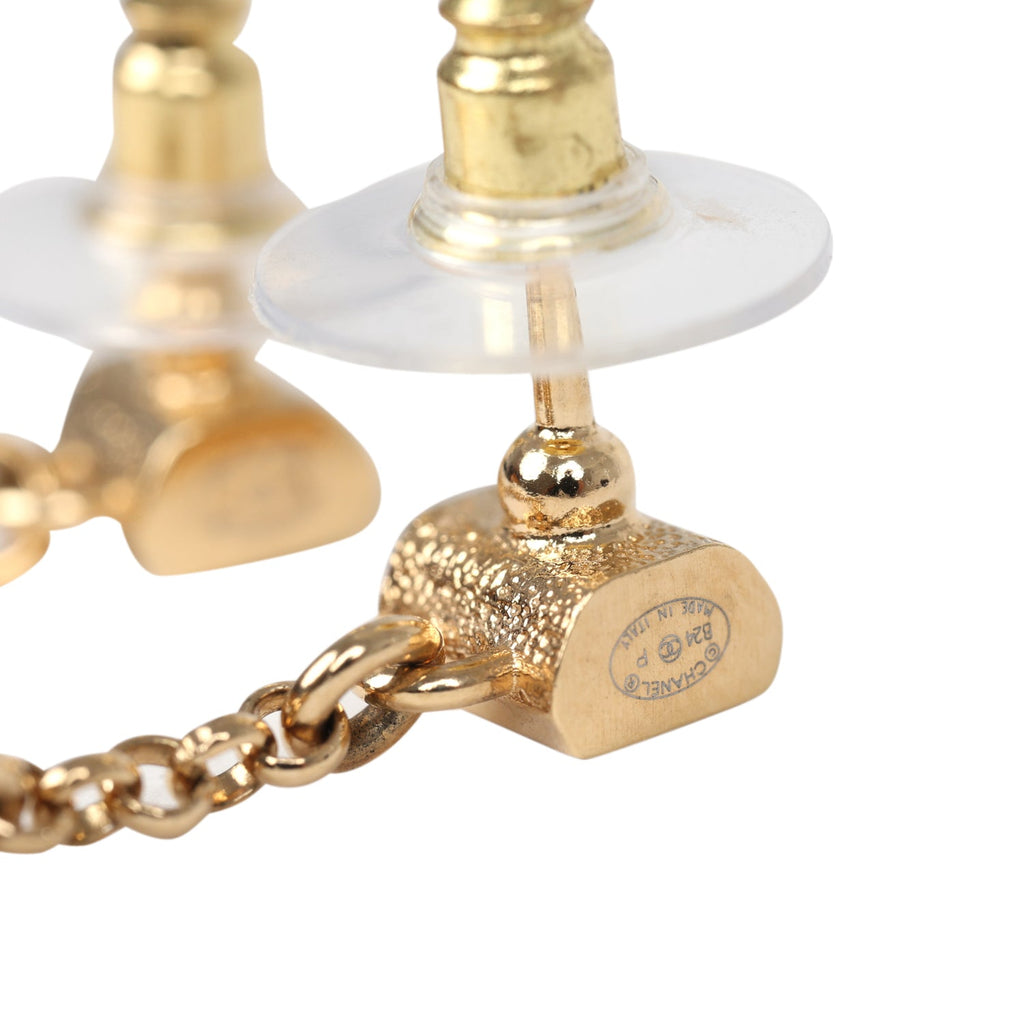 Chanel CC Dangle Earrings Black & White Enamel Gold Tone Hardware