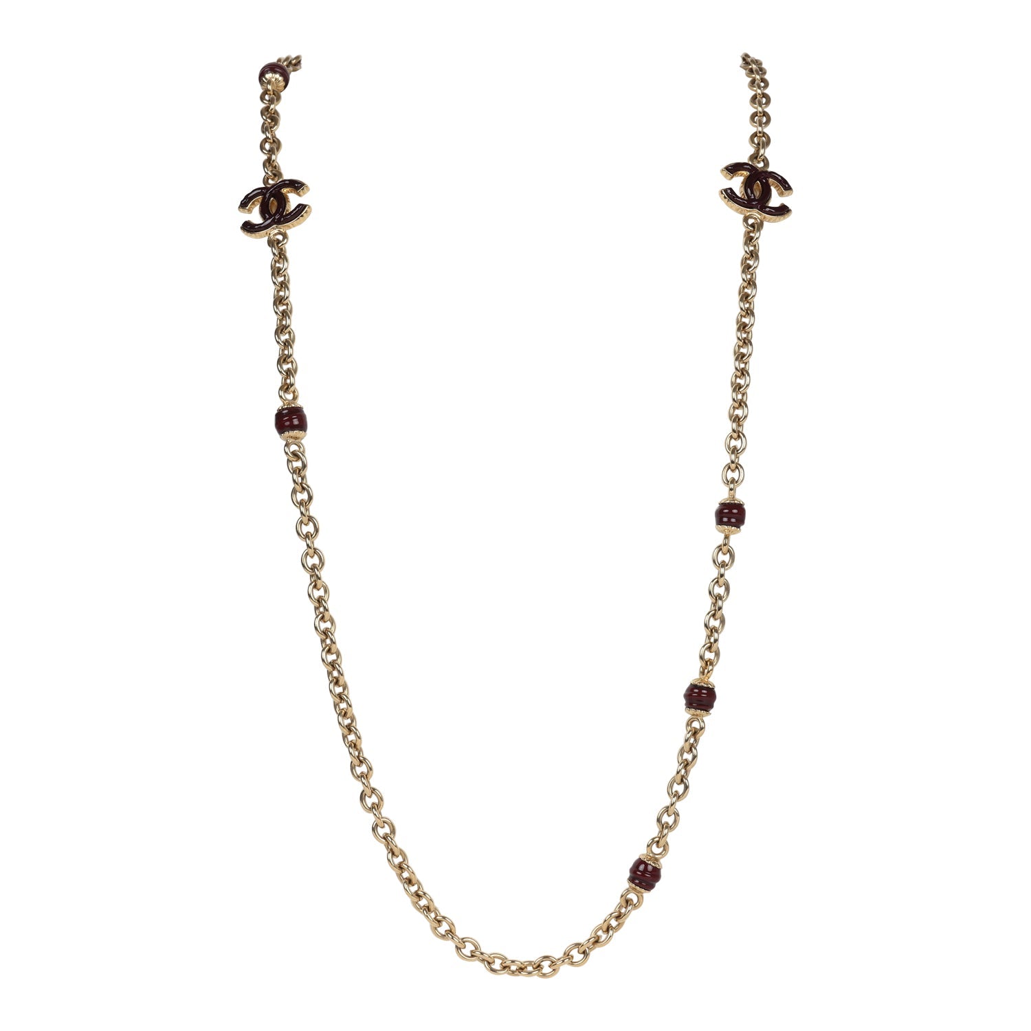 Chanel CC Gripoix Burgundy Beaded Necklace Gold Hardware