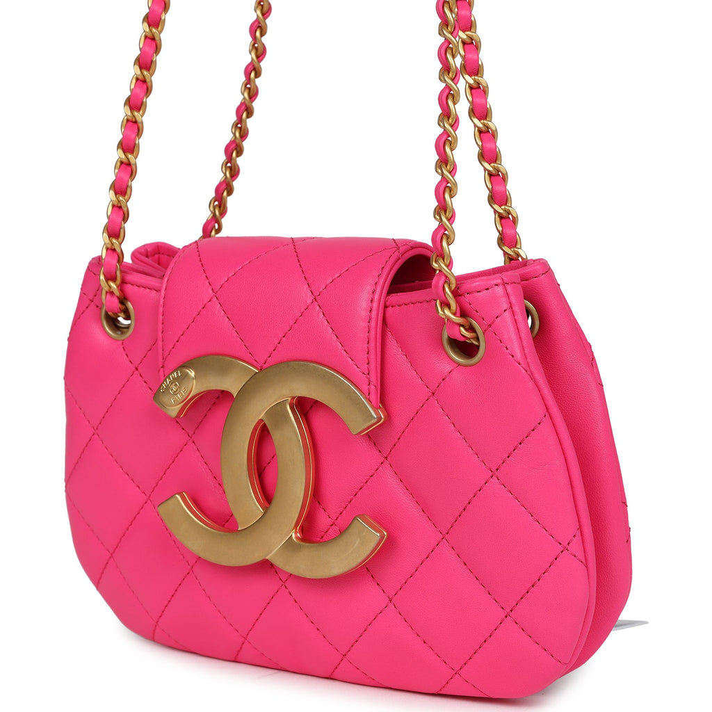 Chanel CC Mini Shoulder Bag Fuchsia Lambskin Antique Gold Hardware