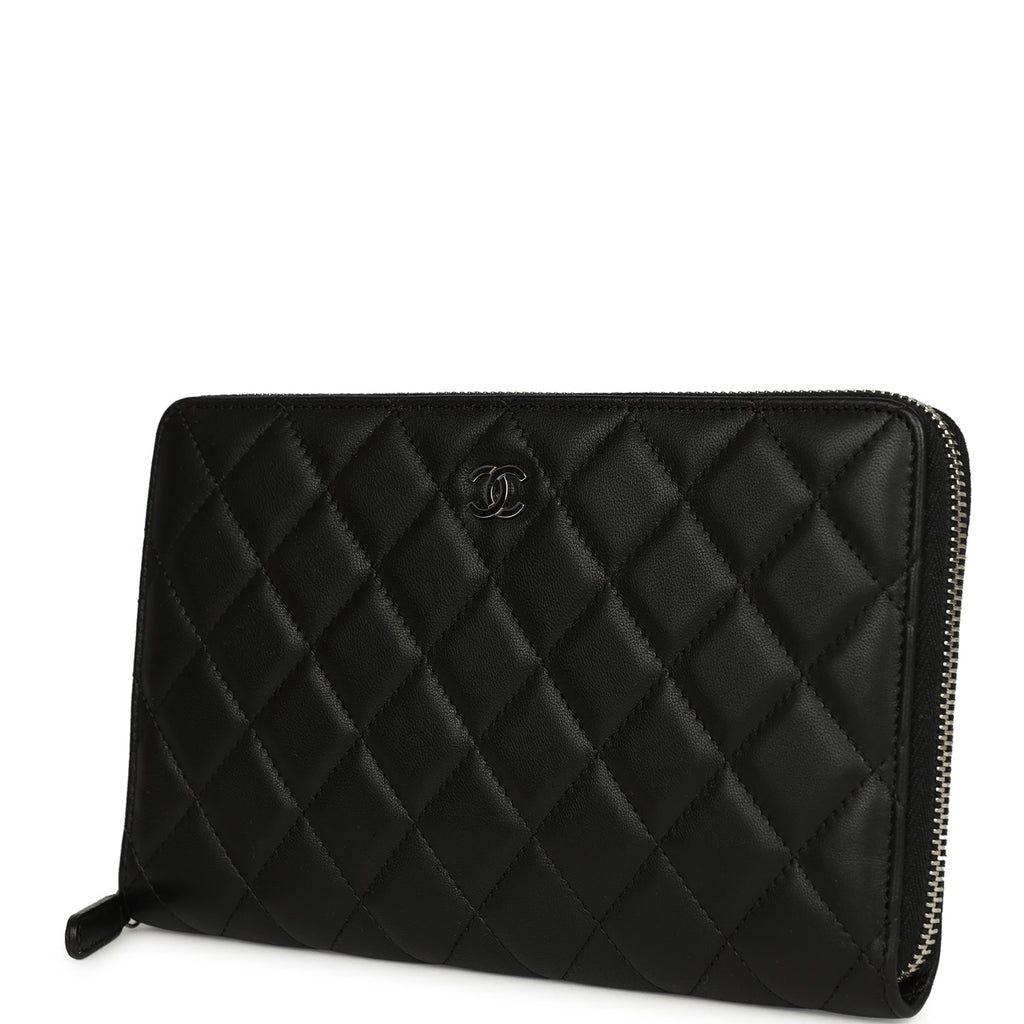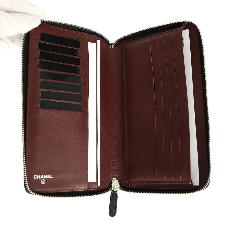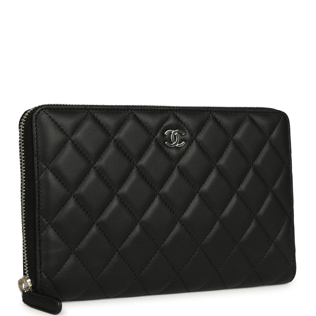 Chanel Classic Organizer Zip Wallet Black Lambskin Silver Hardware