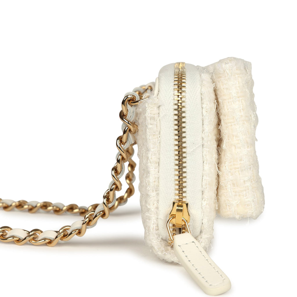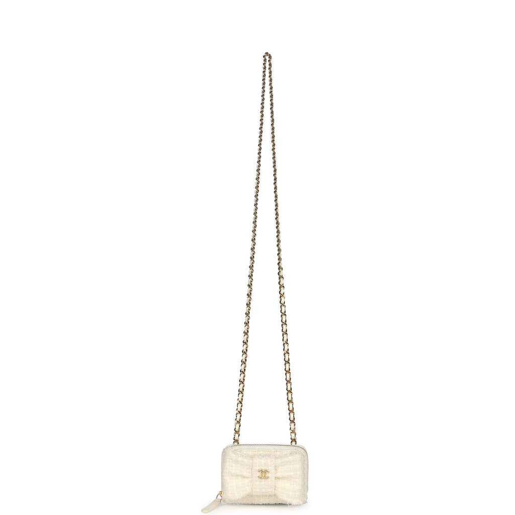 Chanel VIP Wallet on Chain WOC Bow White Tweed Gold Hardware