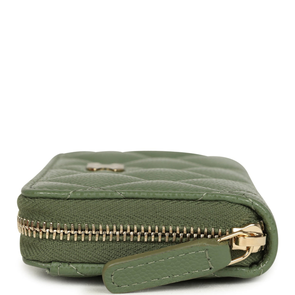 Chanel Classic Zipped Coin Purse Wallet Khaki Shiny Caviar Light Gold Hardware