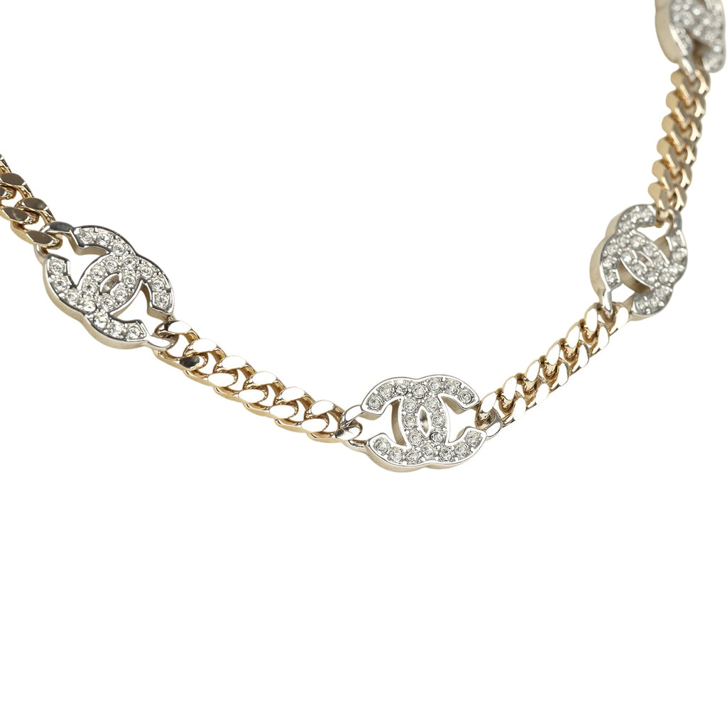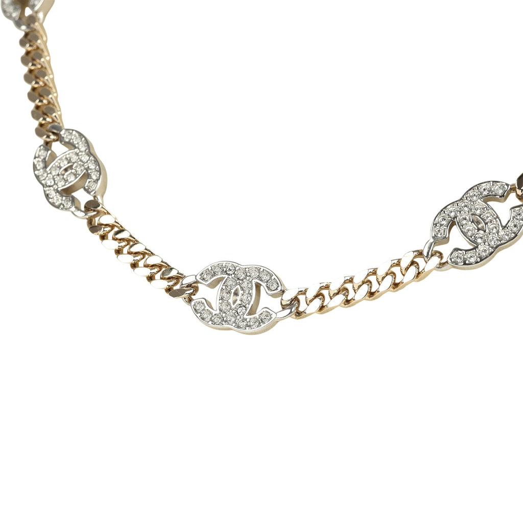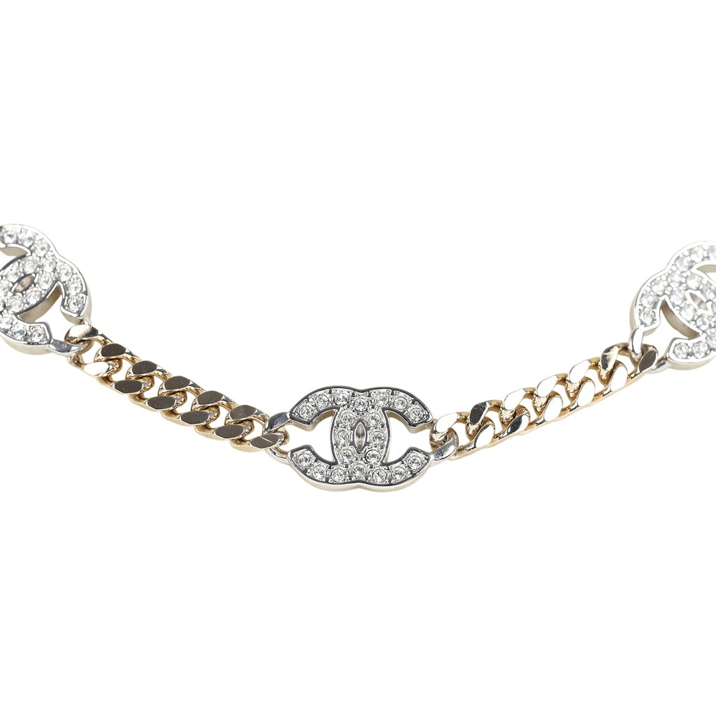 Chanel Crystal CC Choker Necklace Silver Tone and Light Gold Tone Hardware