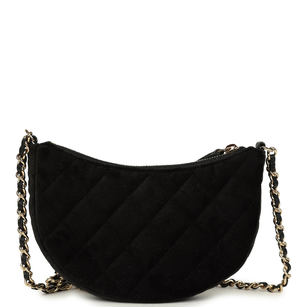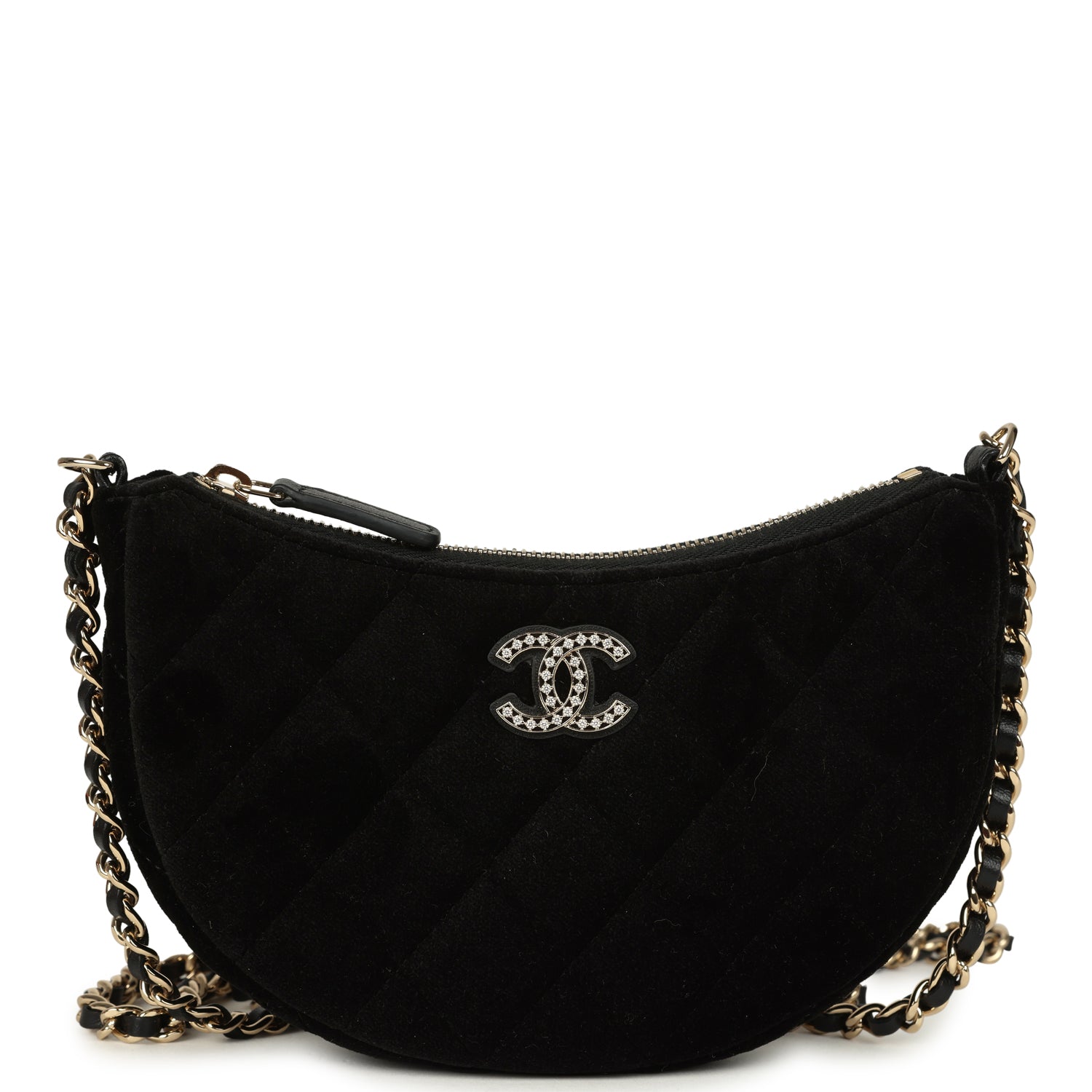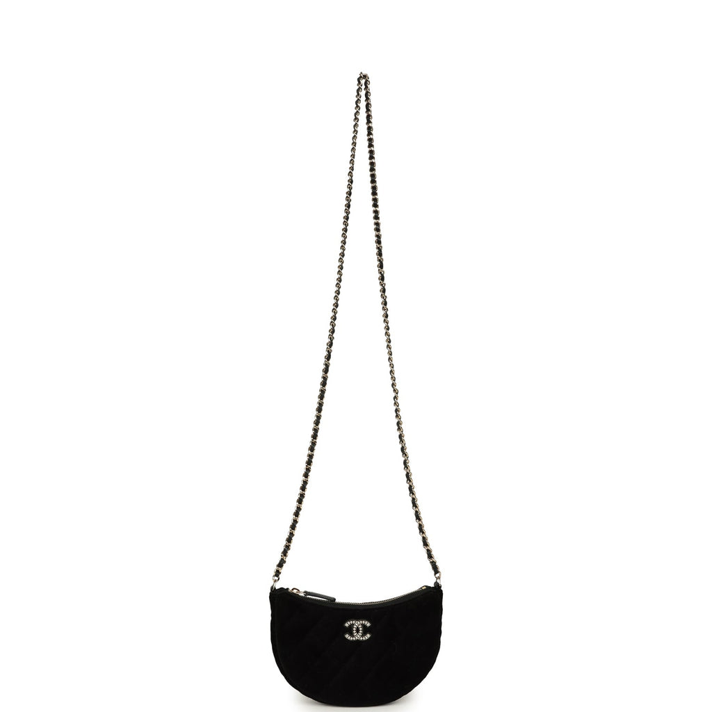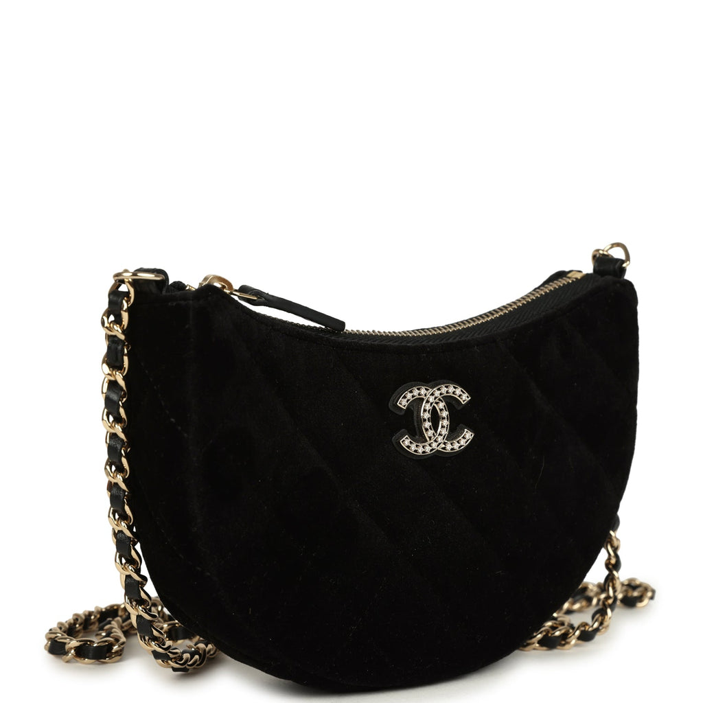 Chanel Crystal CC Hobo Bag with Chain Black Velvet Light Gold Hardware