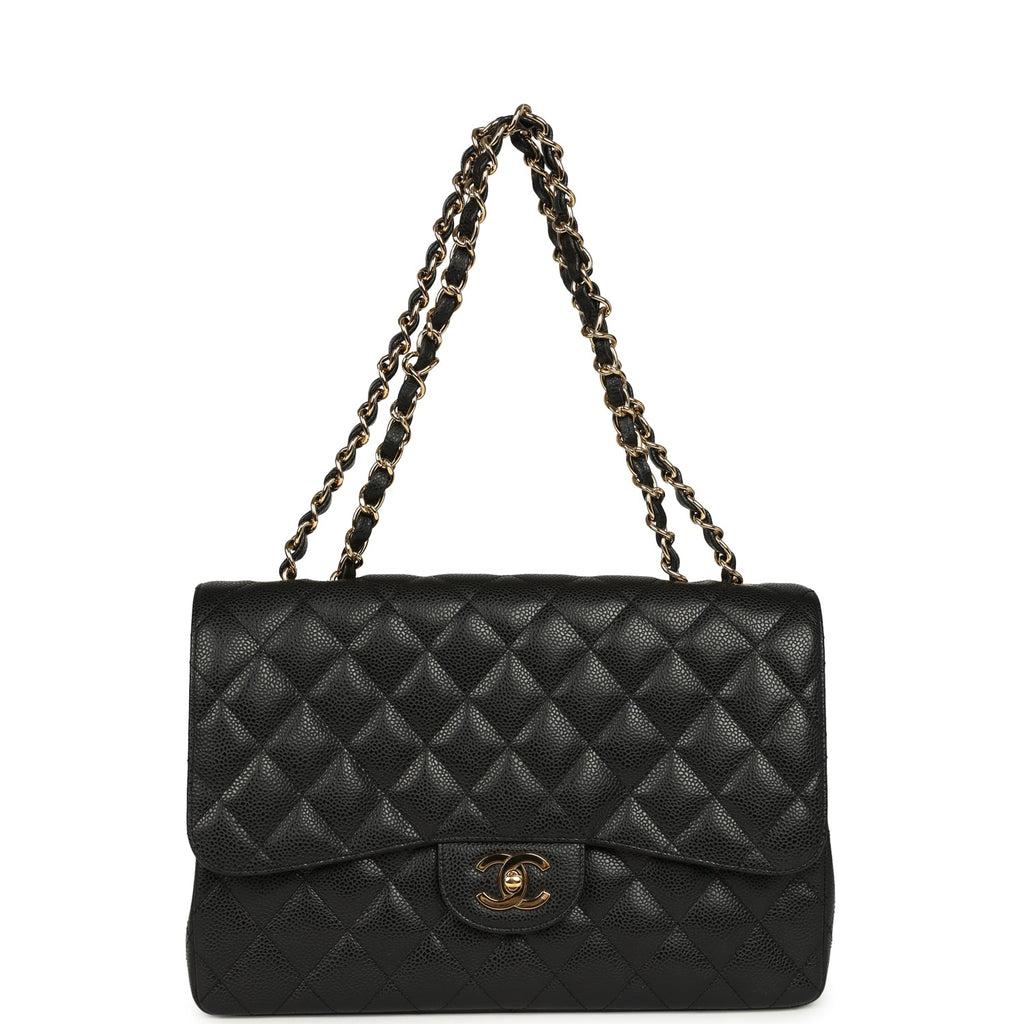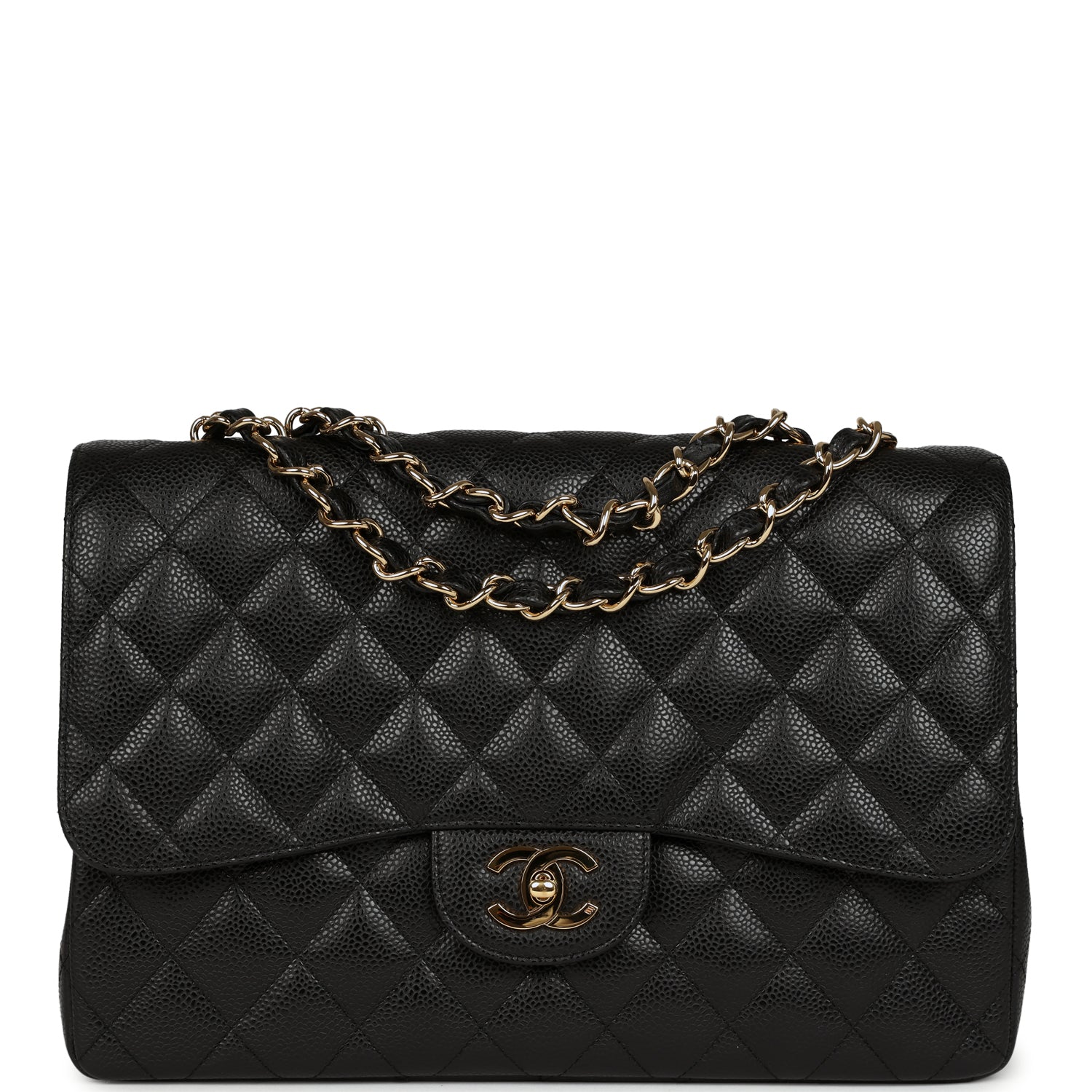 Chanel Jumbo Classic Single Flap Bag Black Caviar Gold Hardware