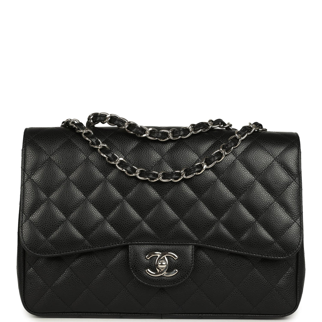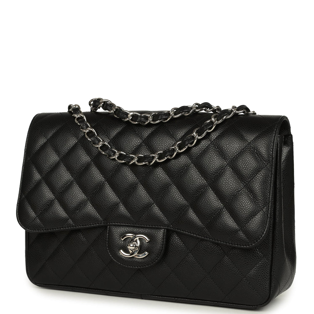 Chanel Jumbo Classic Single Flap Bag Black Caviar Silver Hardware