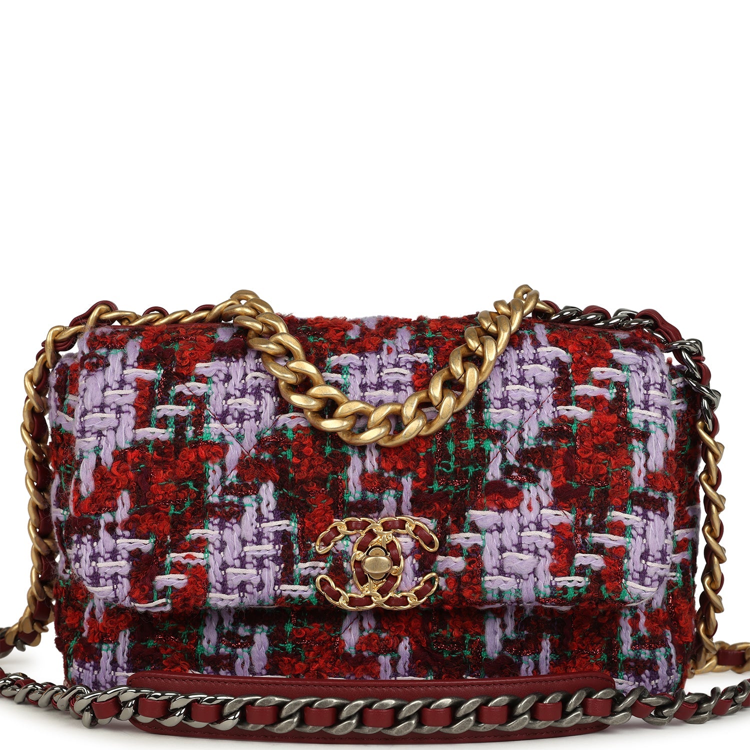 Chanel Medium 19 Flap Bag Burgundy, Purple, Red Tweed Mixed Metal Hardware