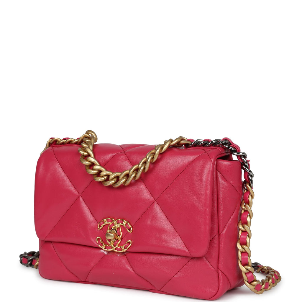 Chanel Medium 19 Flap Dark Pink Lambskin Mixed Metal Hardware