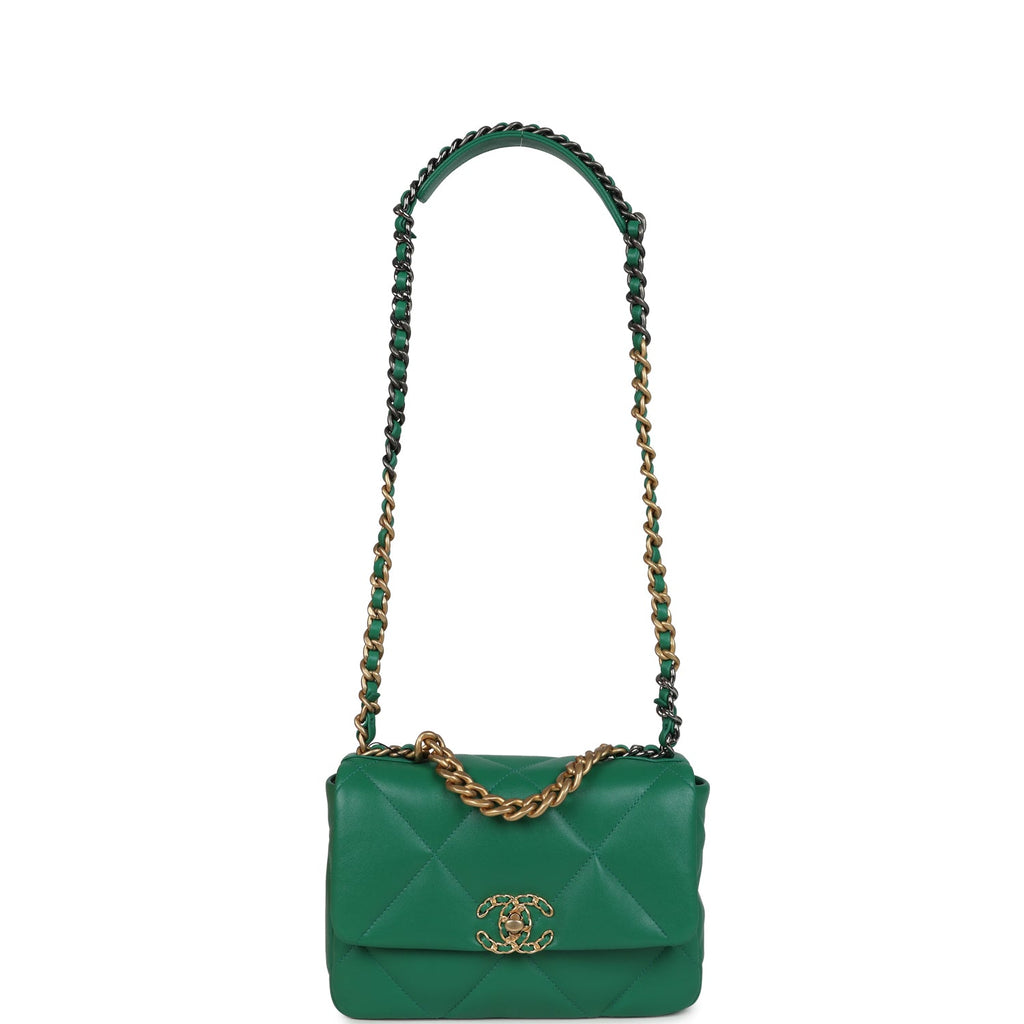 Chanel Medium 19 Flap Green Shiny Lambskin Mixed Metal Hardware