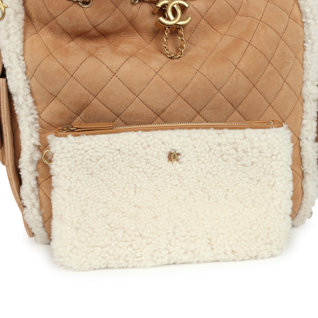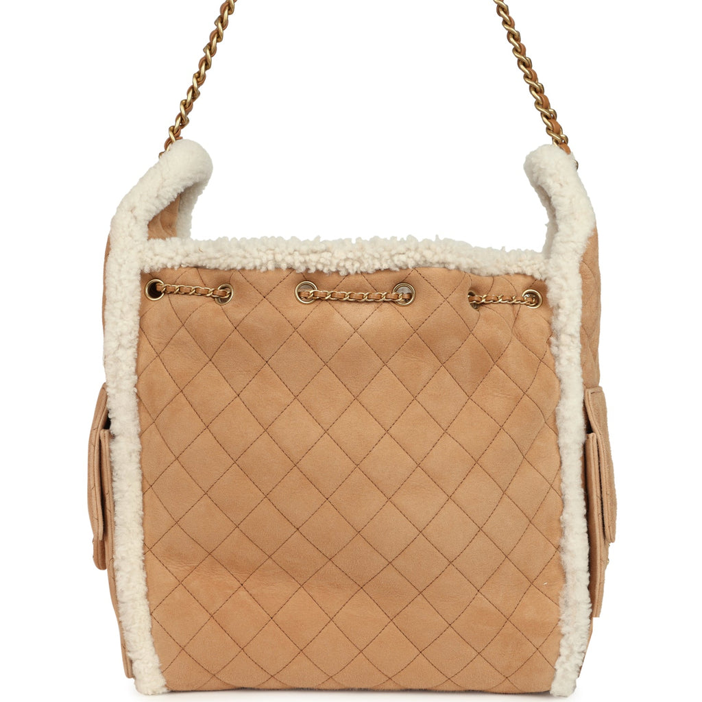 Chanel Medium 25 Hobo Bag Beige Suede and White Shearling Antique Gold Hardware