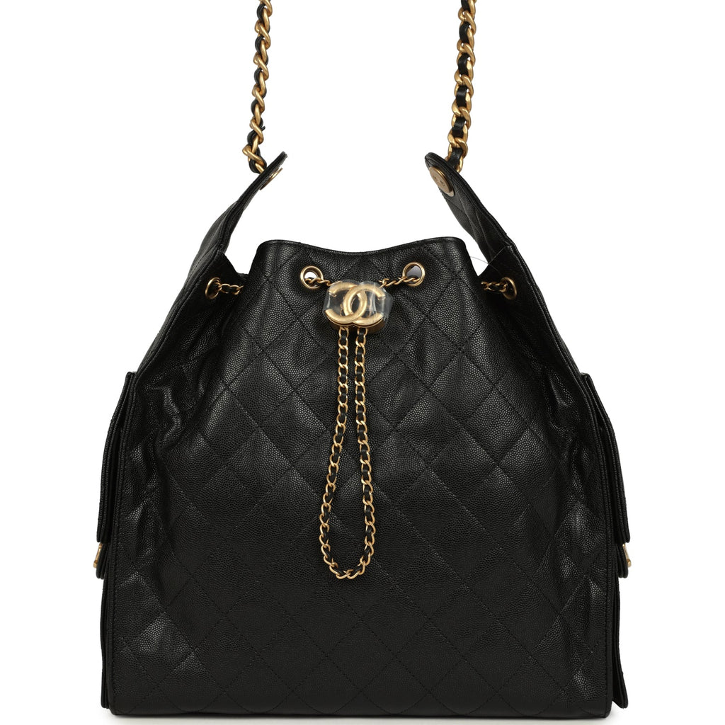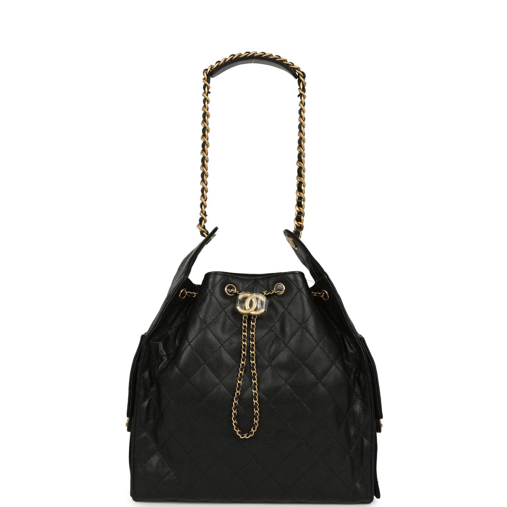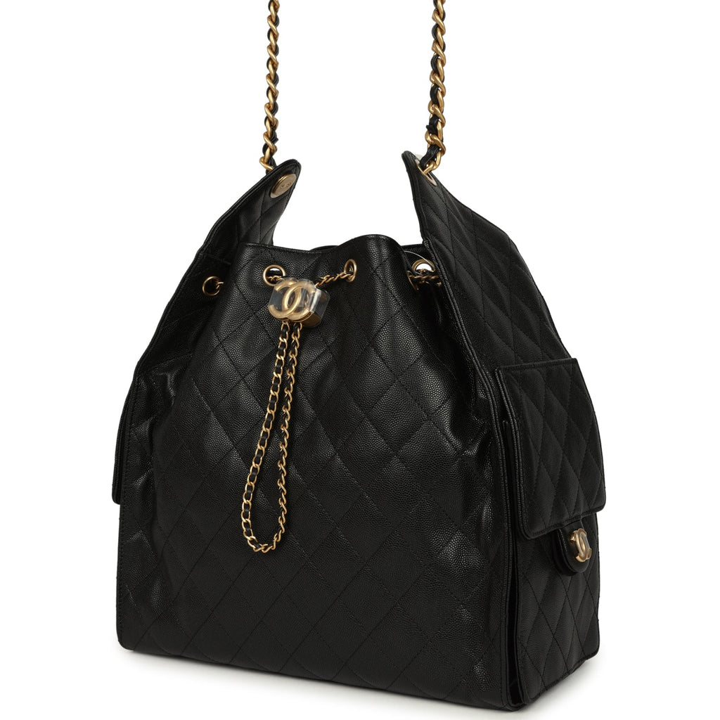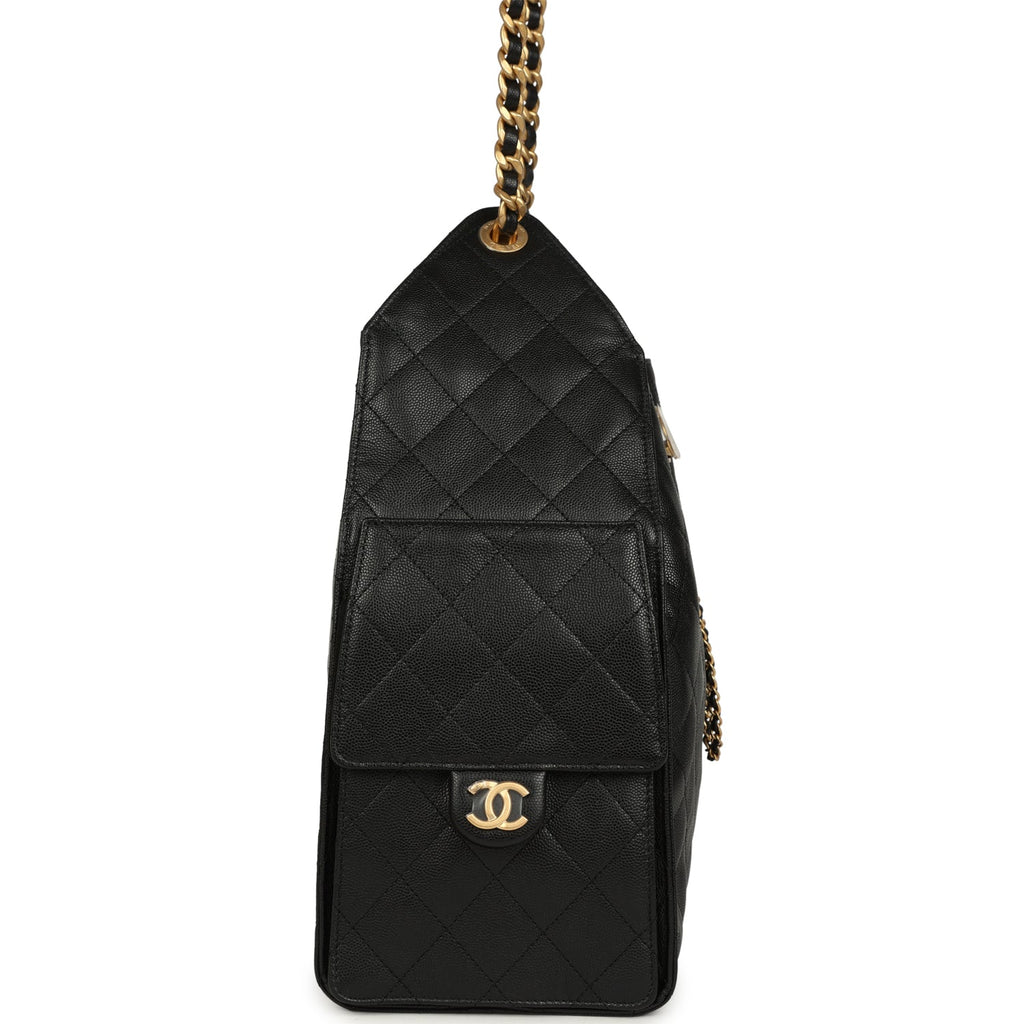 Chanel Medium 25 Hobo Bag Black Caviar Antique Gold Hardware