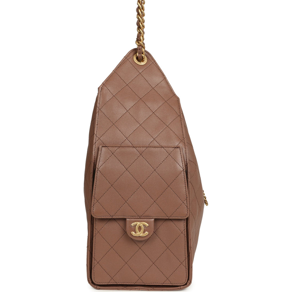 Chanel Medium 25 Hobo Bag Brown Caviar Antique Gold Hardware