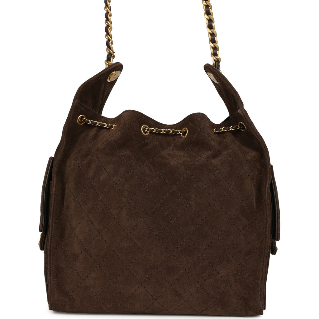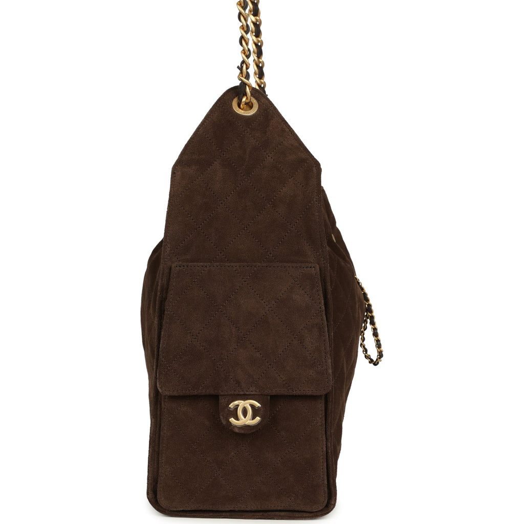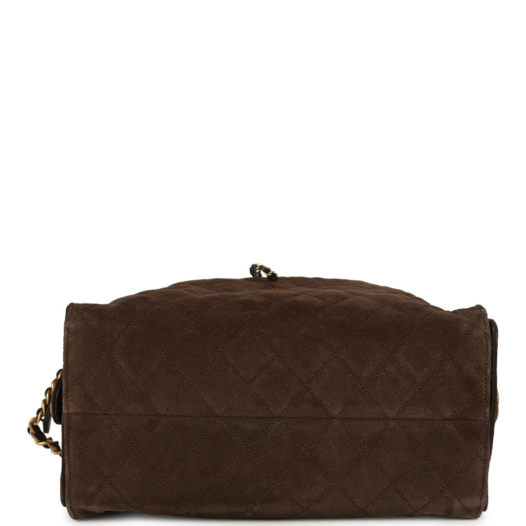 Chanel Medium 25 Hobo Bag Dark Brown Suede Antique Gold Hardware