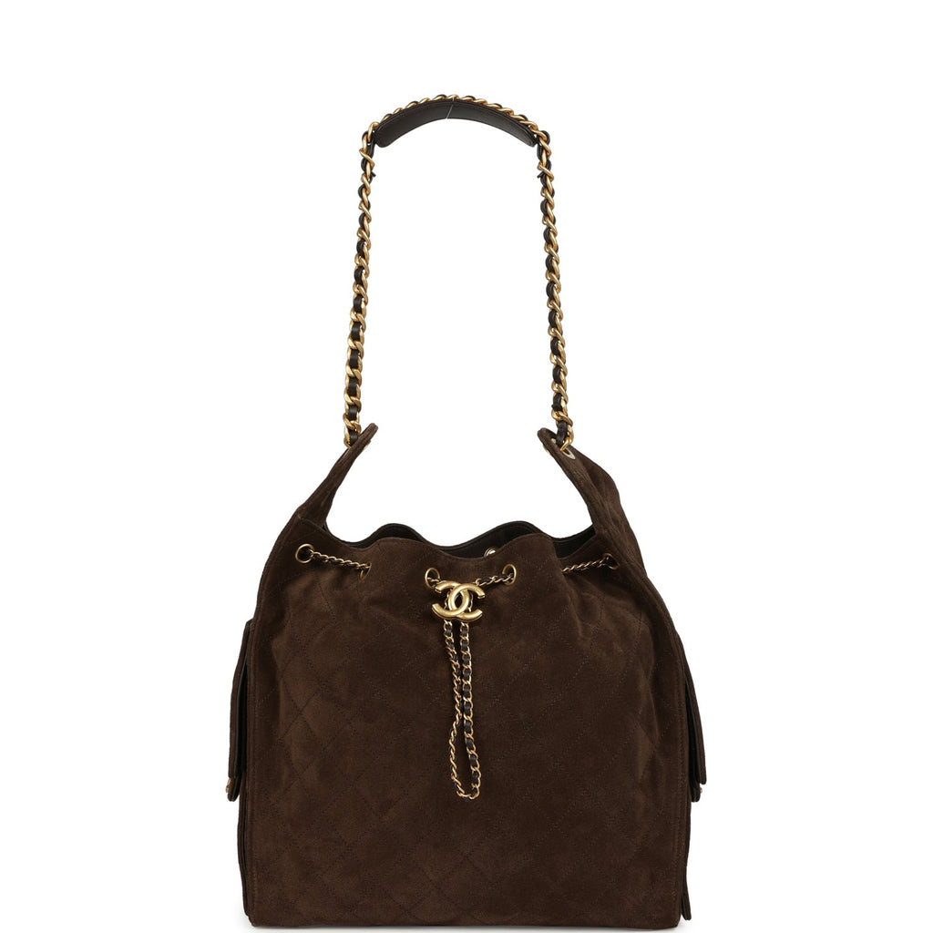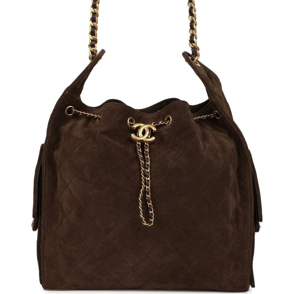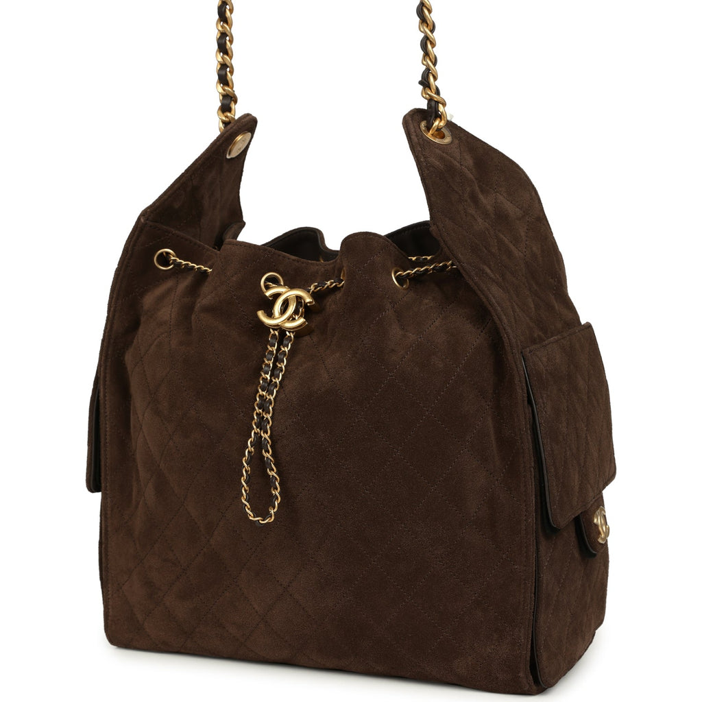 Chanel Medium 25 Hobo Bag Dark Brown Suede Antique Gold Hardware