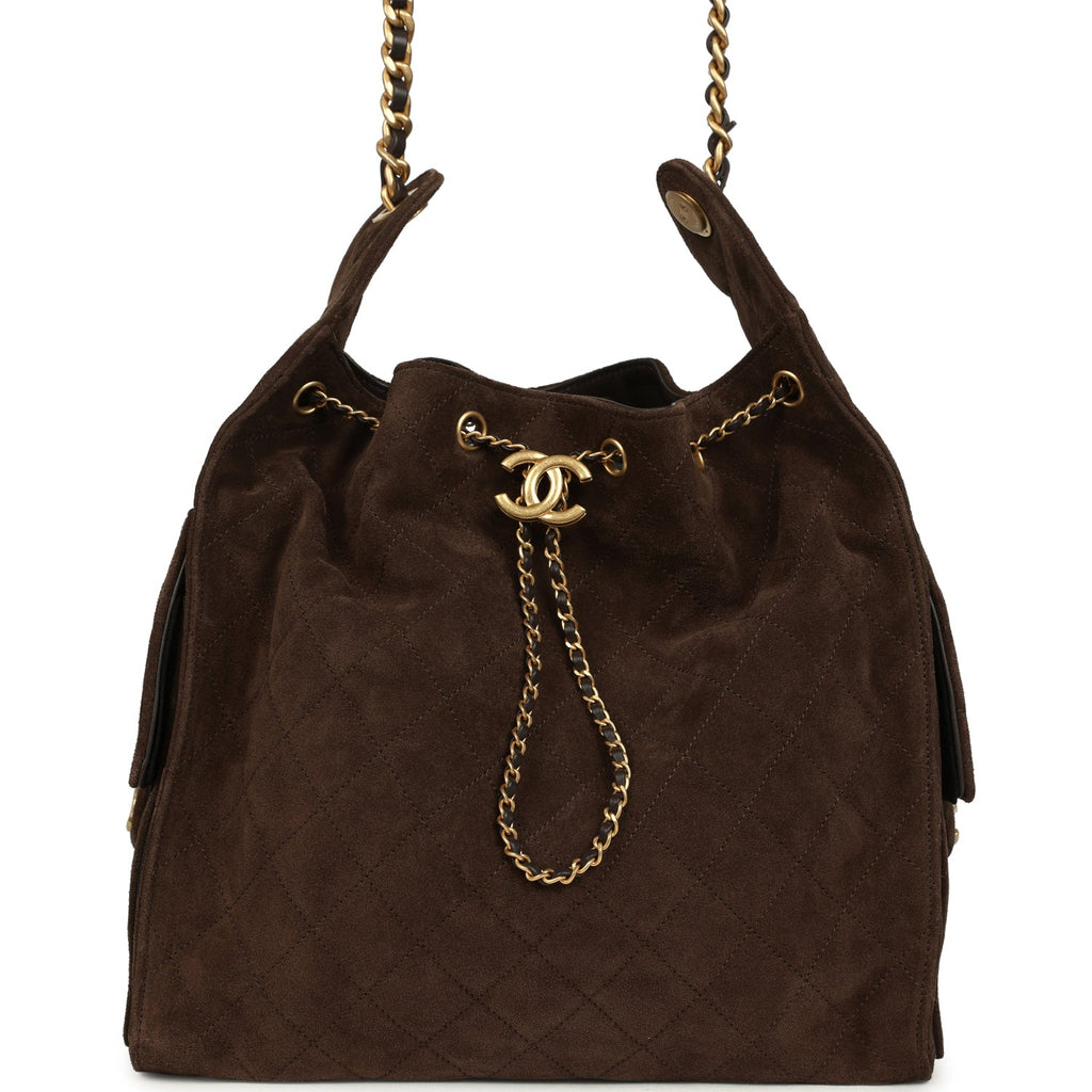 Chanel Medium 25 Hobo Bag Dark Brown Suede Antique Gold Hardware