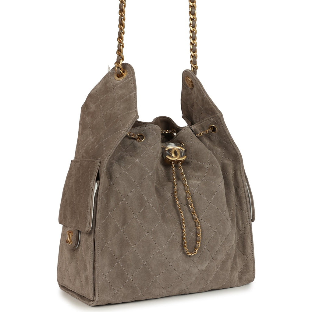 Chanel Medium 25 Hobo Bag Dark Grey Suede Antique Gold Hardware