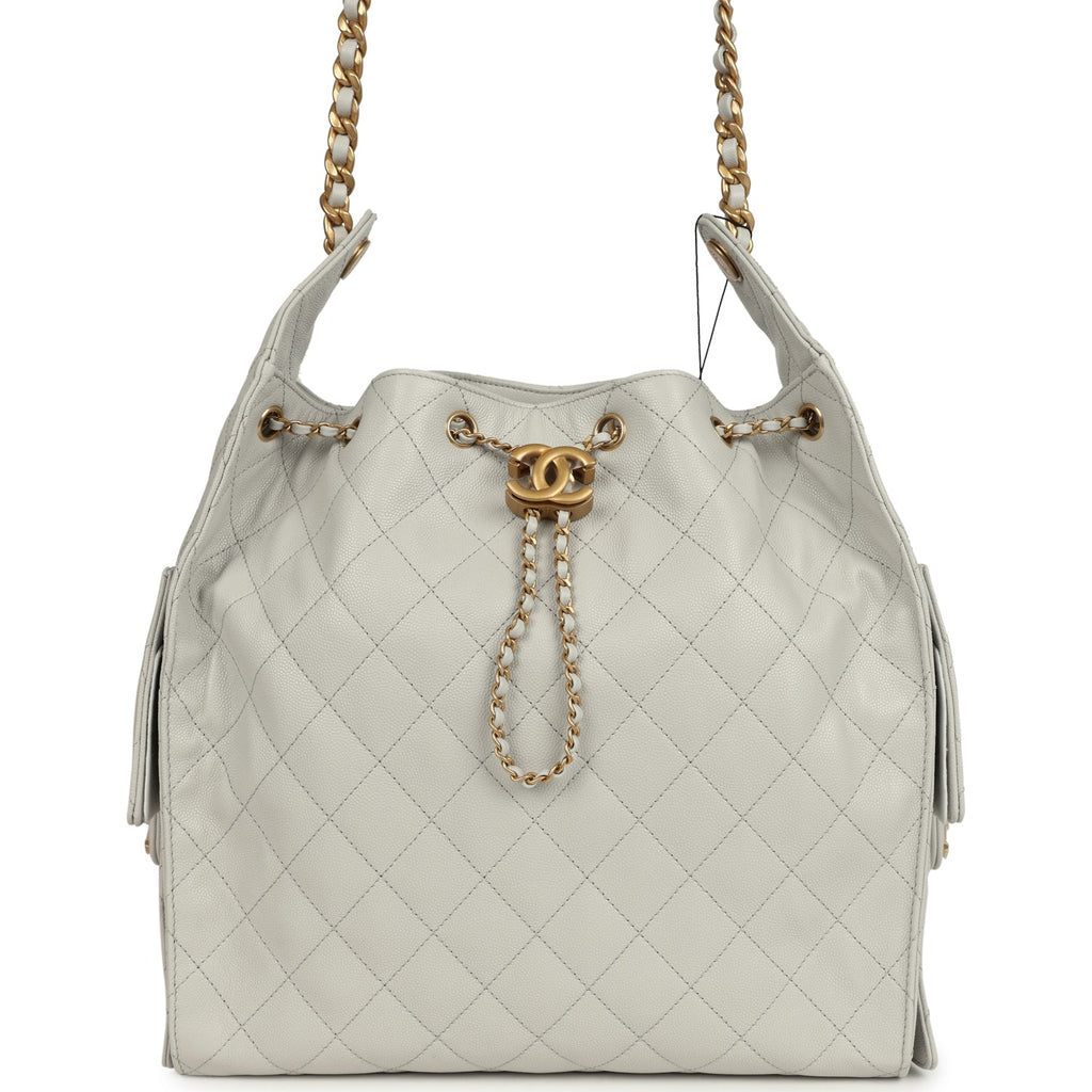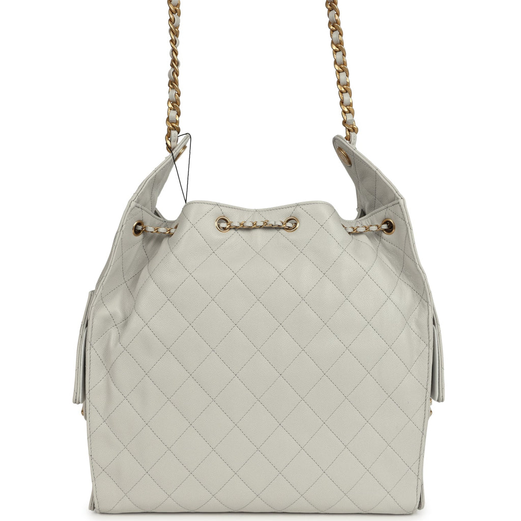 Chanel Medium 25 Hobo Bag Light Grey Caviar Antique Gold Hardware