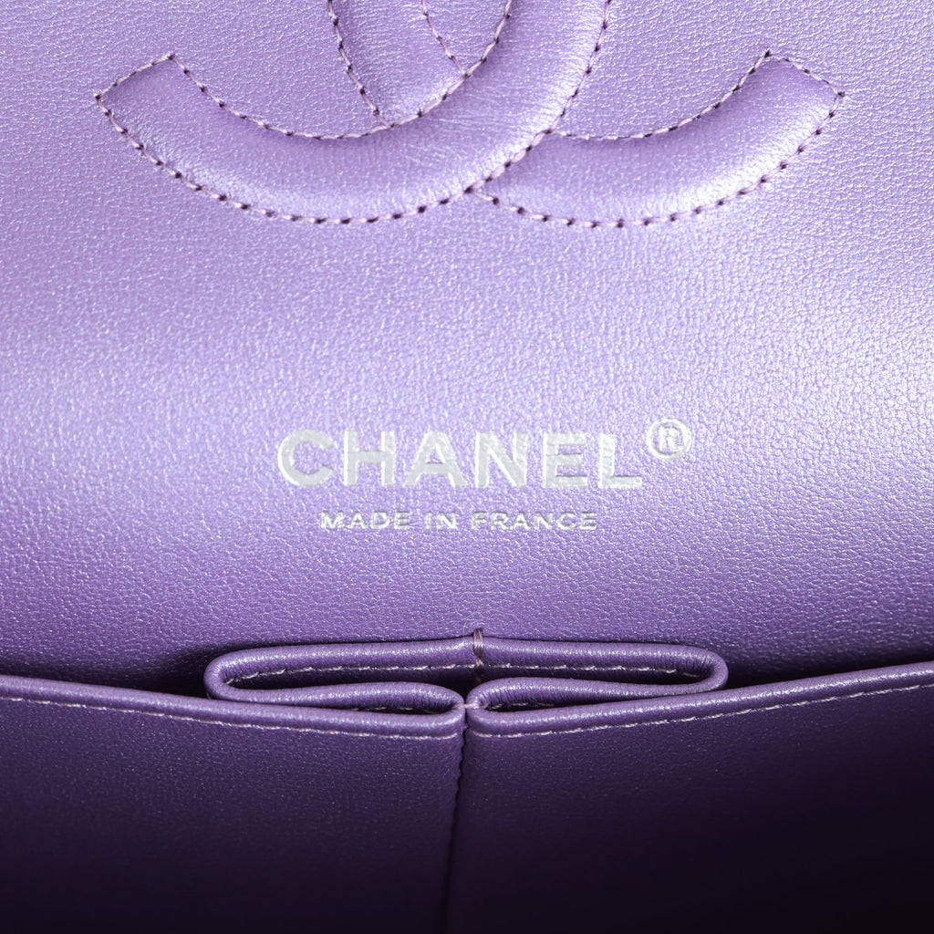 Chanel Medium Classic Double Flap Bag Purple Metallic Lambskin Silver Hardware