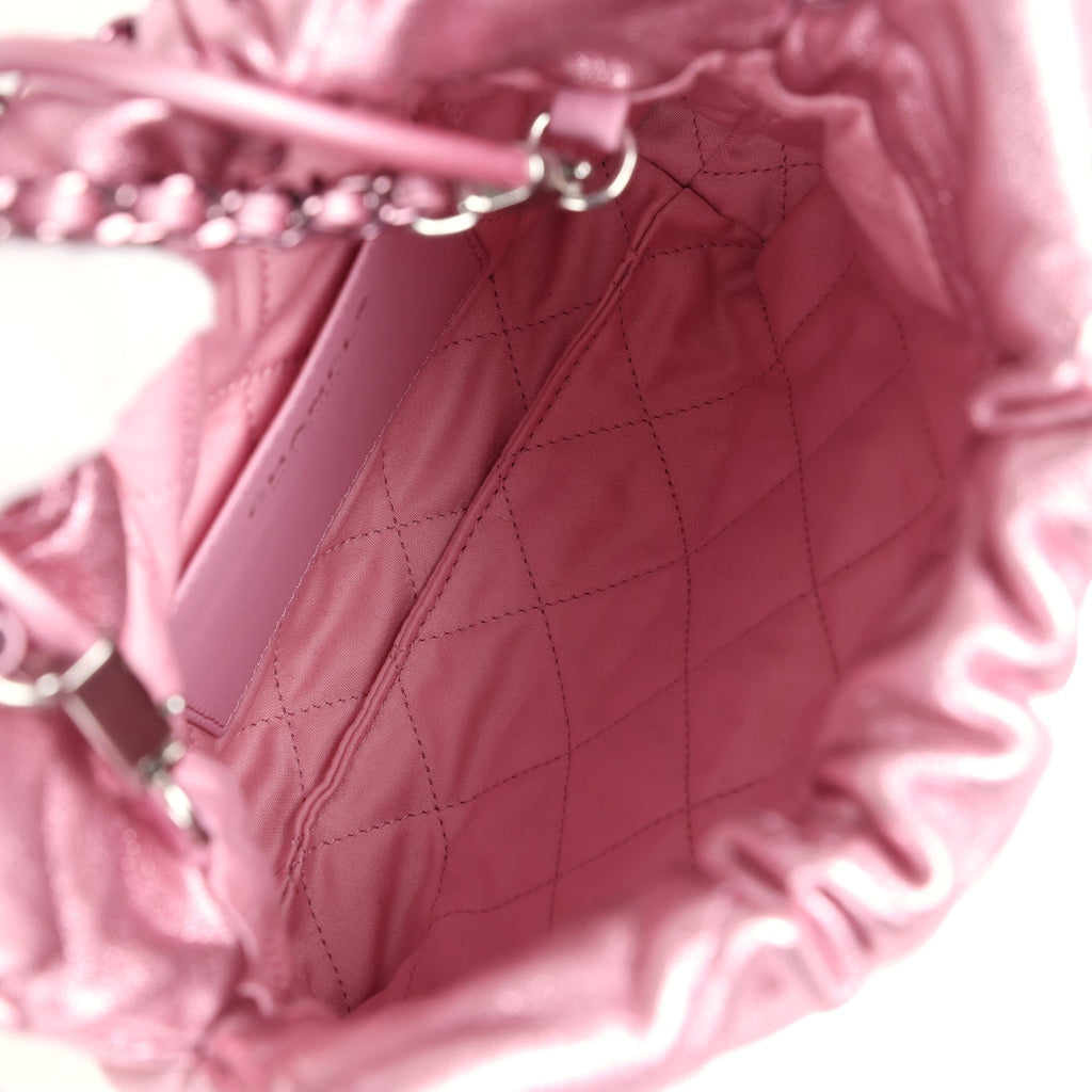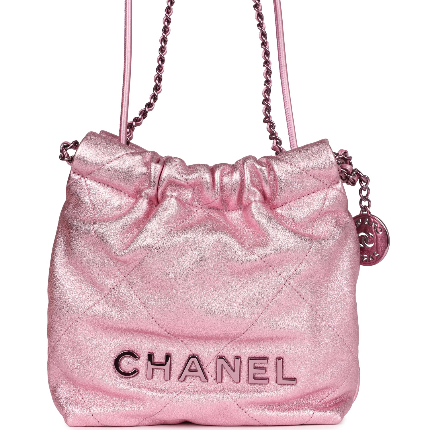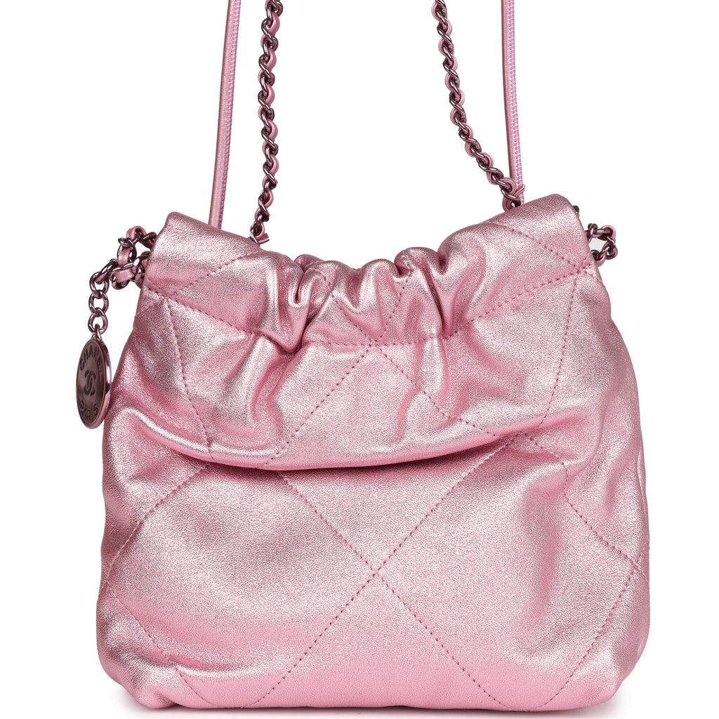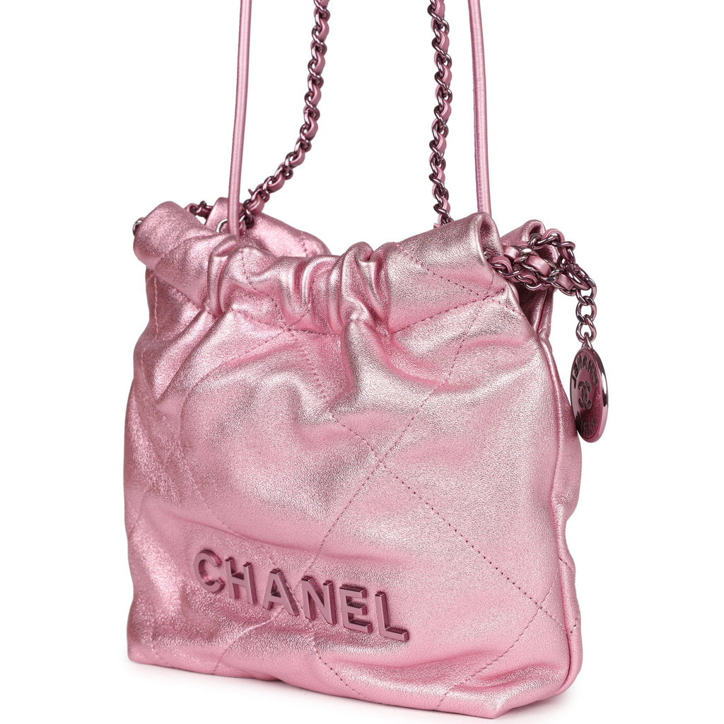 Chanel Mini 22 Bag Pink Metallic Lambskin Lacquered Metal Hardware