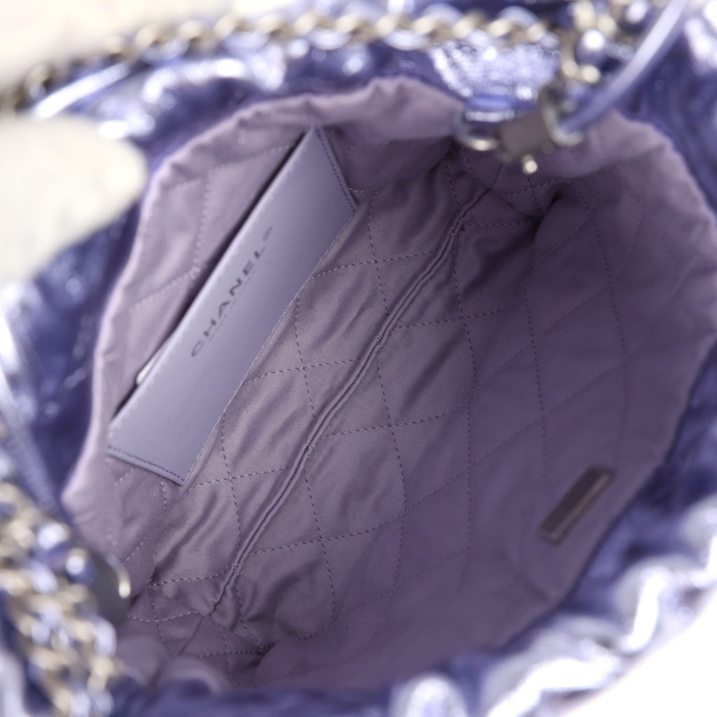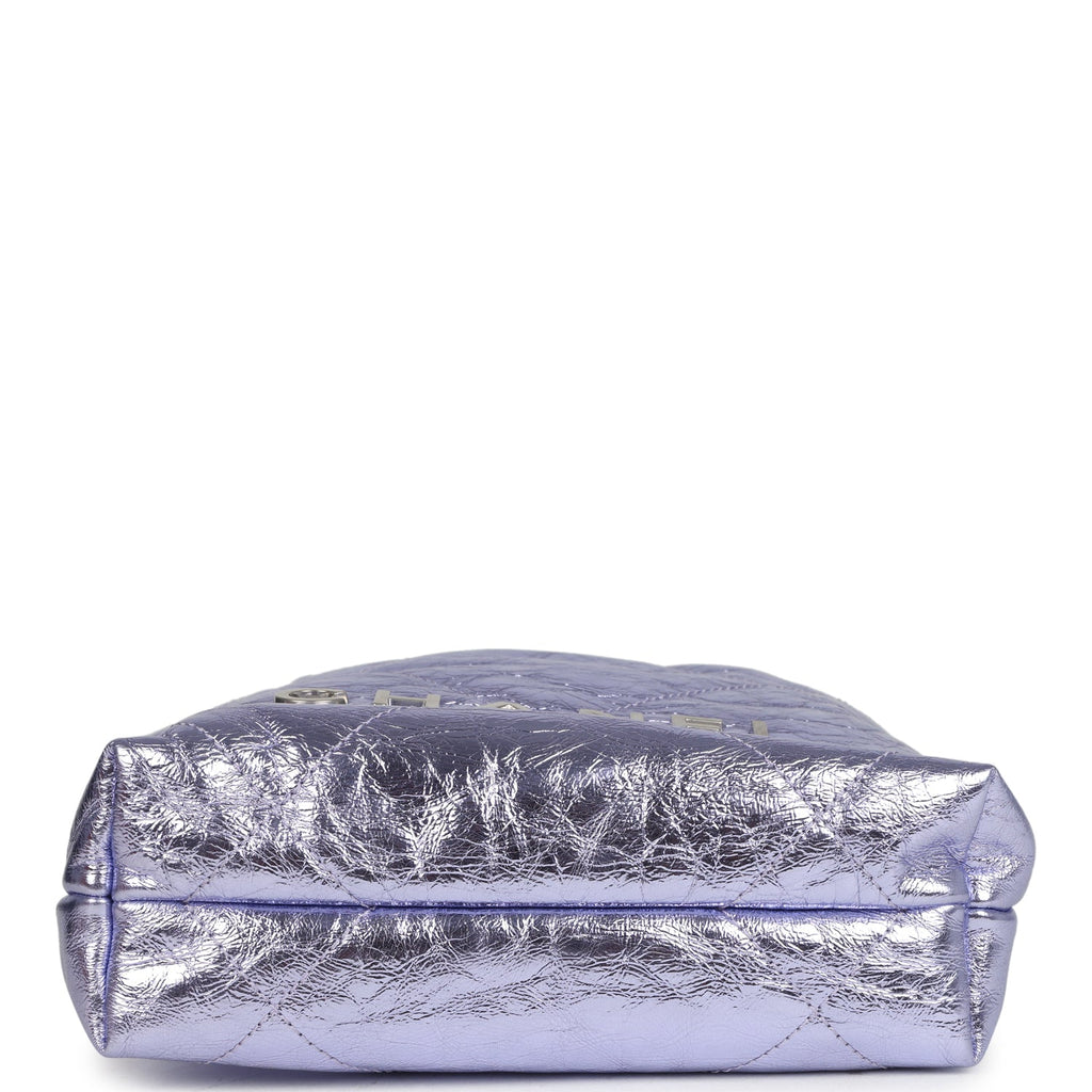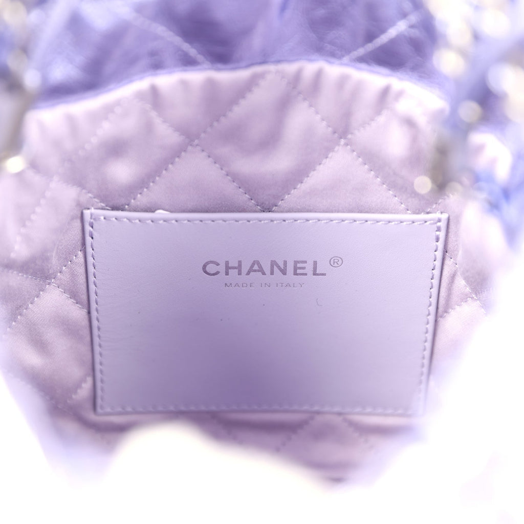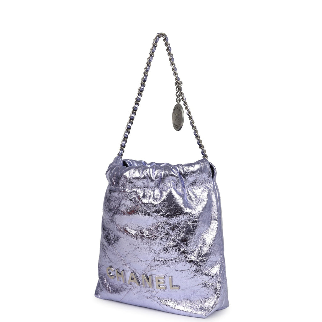 Chanel Mini 22 Bag Purple Metallic Calfskin Brushed Silver Hardware