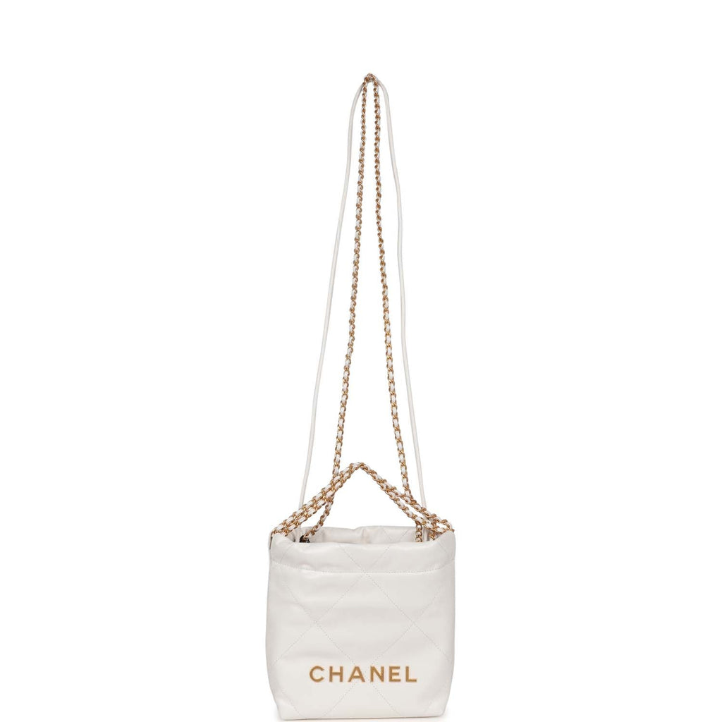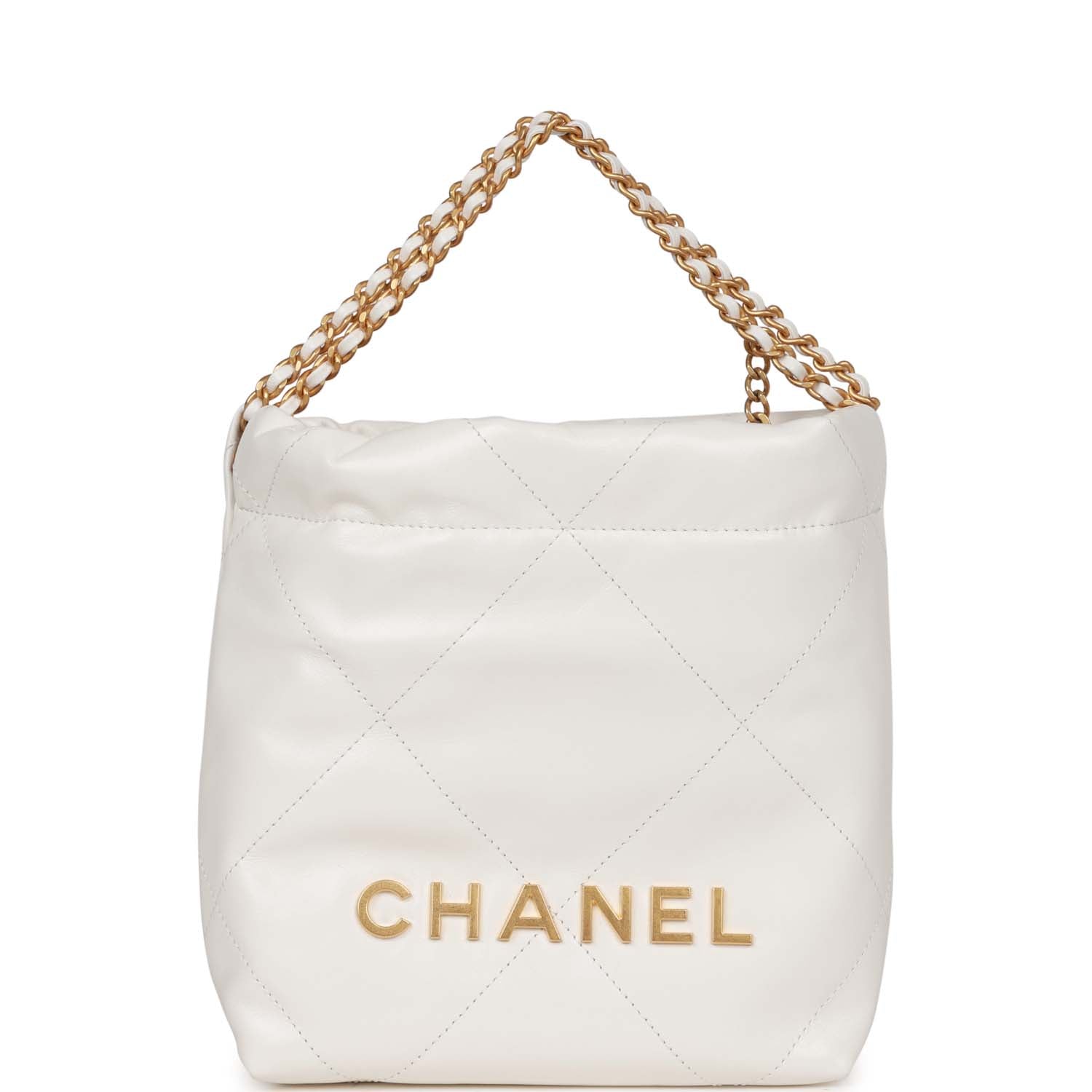 Chanel Mini 22 Bag White Calfskin Antique Gold Hardware