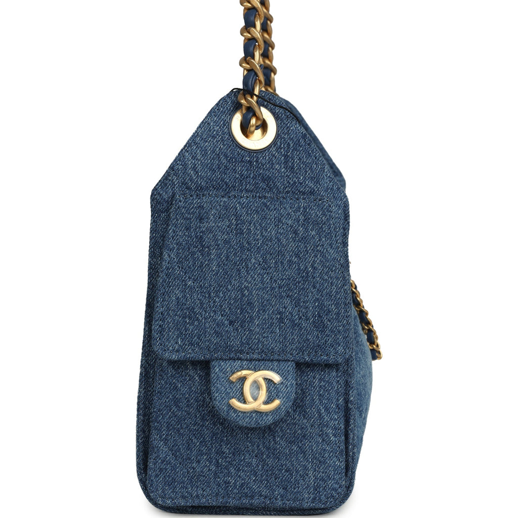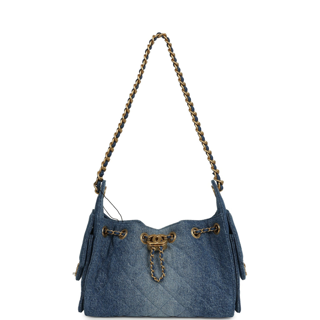 Chanel Mini 25 Hobo Bag Blue Washed Denim Antique Gold Hardware