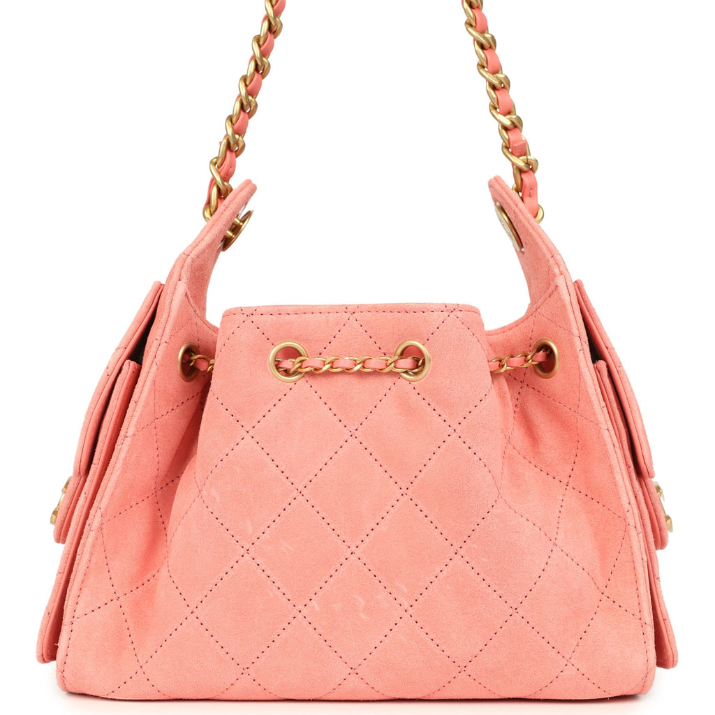 Chanel Mini 25 Hobo Bag Pink Suede Antique Gold Hardware