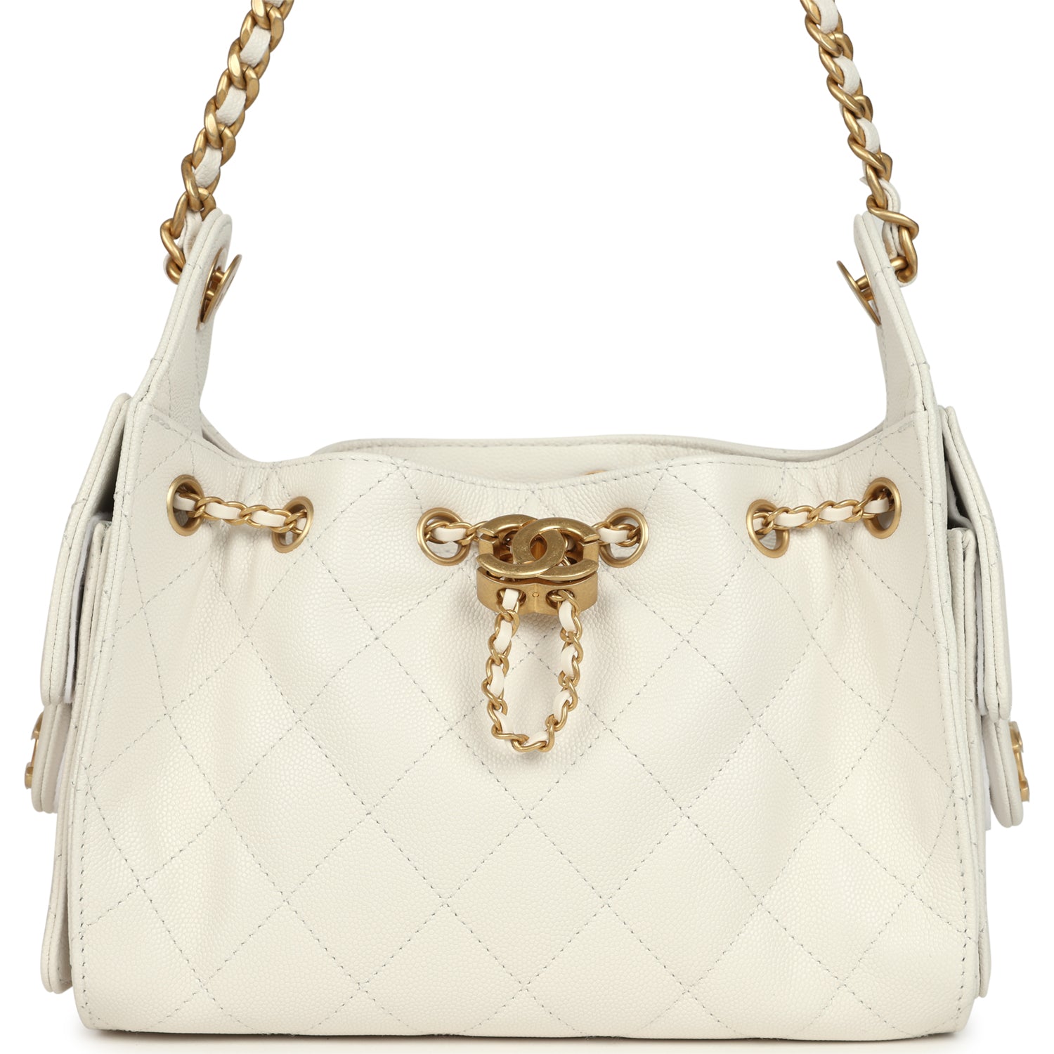 Chanel Mini 25 Hobo Bag White Caviar Antique Gold Hardware