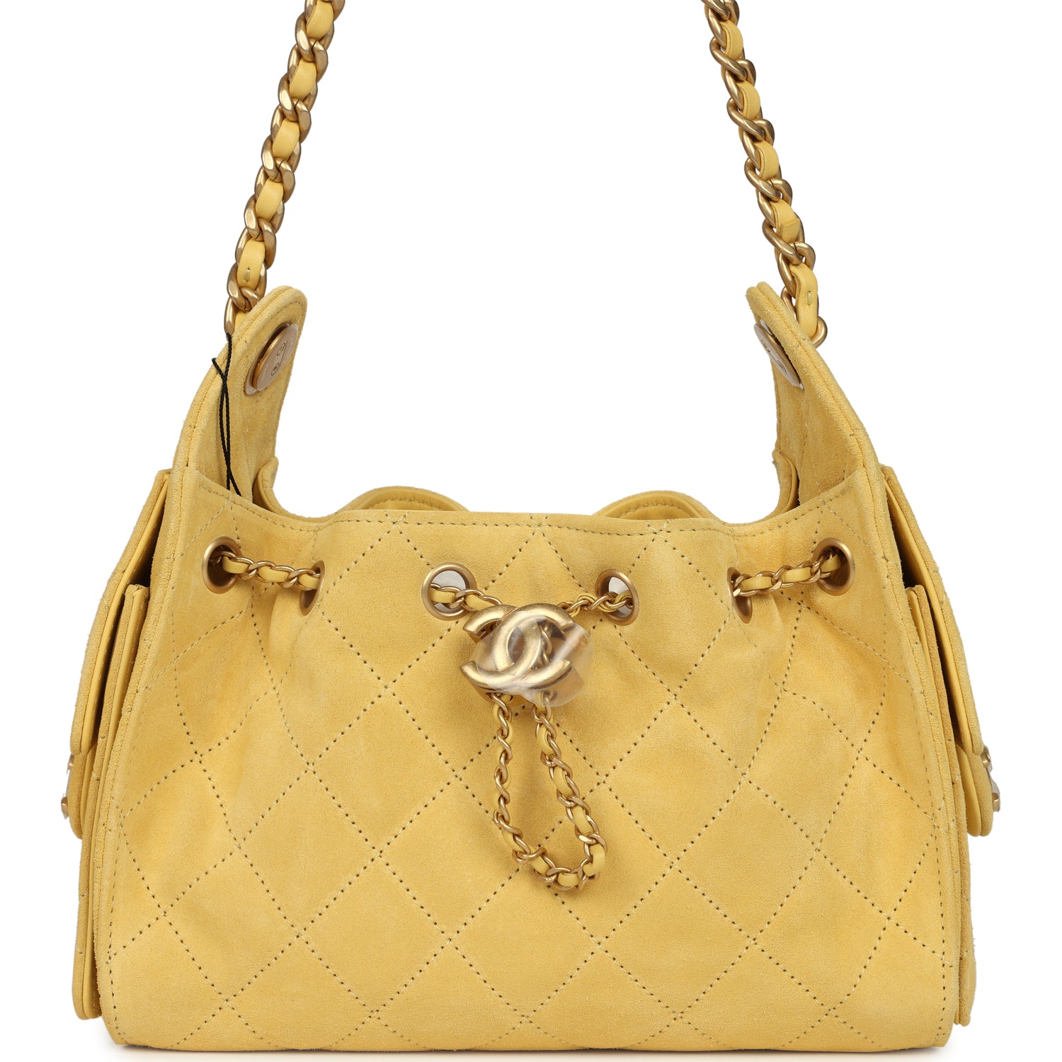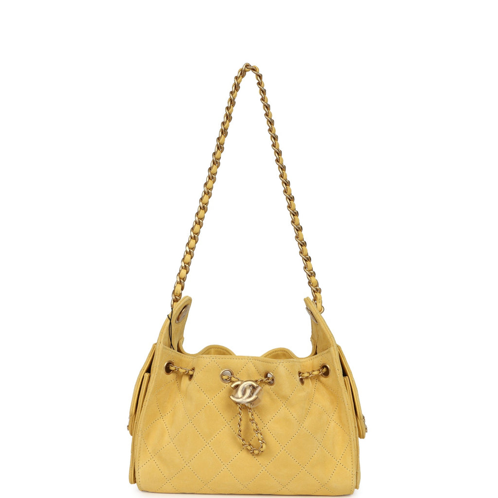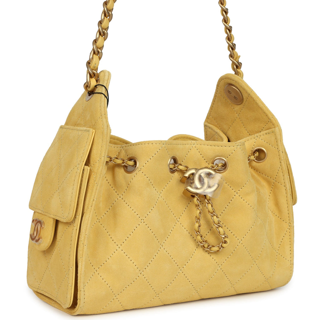 Chanel Mini 25 Hobo Bag Yellow Suede Antique Gold Hardware