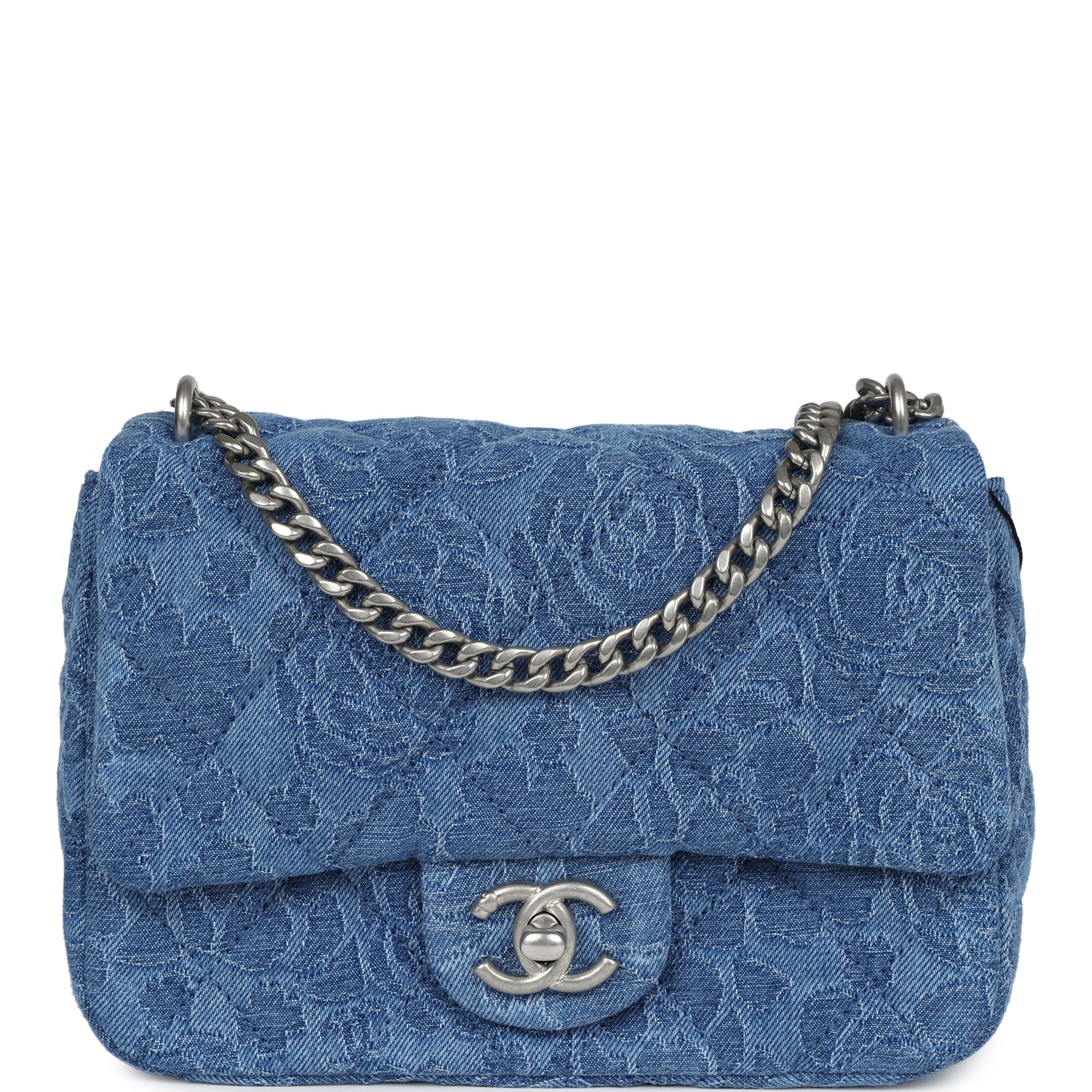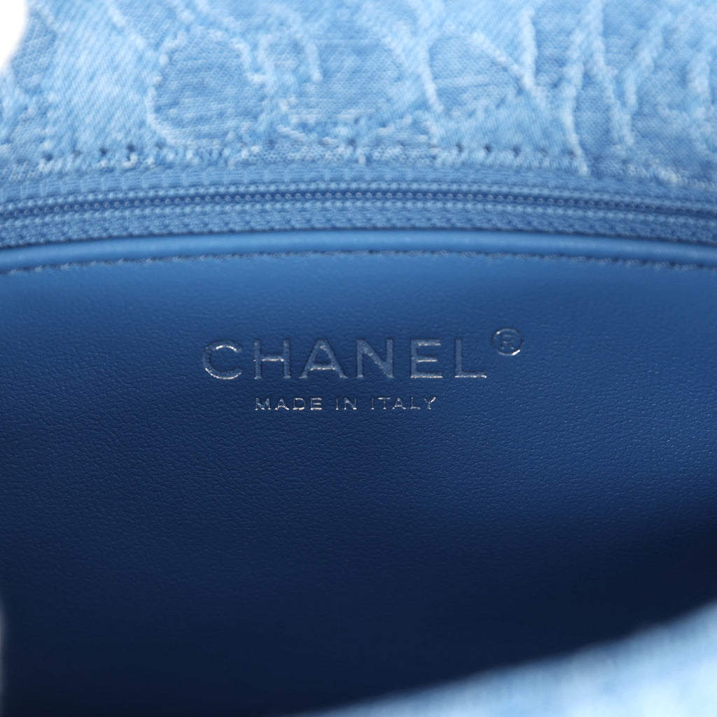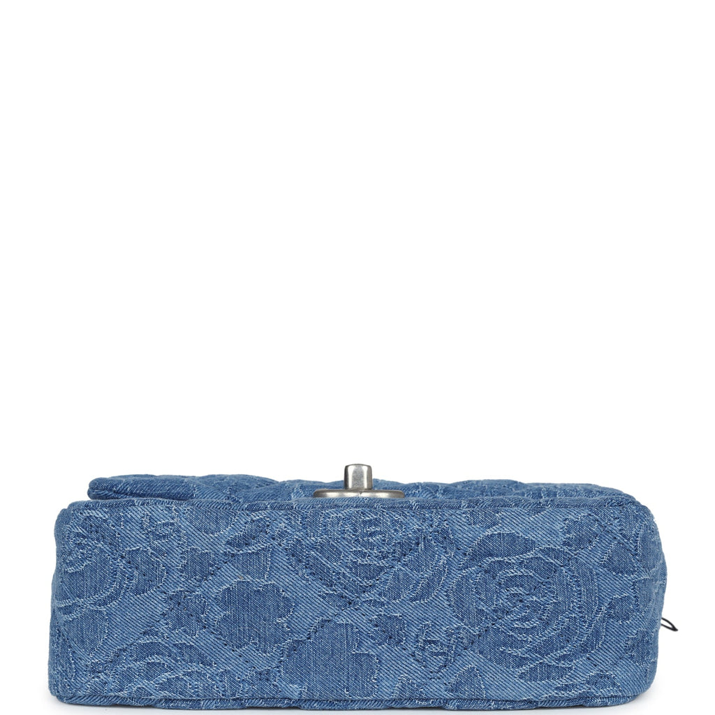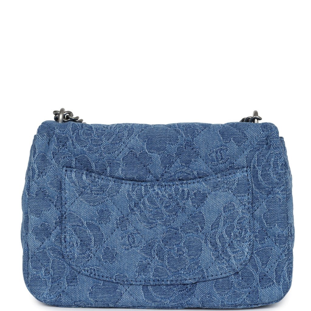 Chanel Mini Camellia Crush Rectangular Flap Blue Denim Antique Silver Hardware