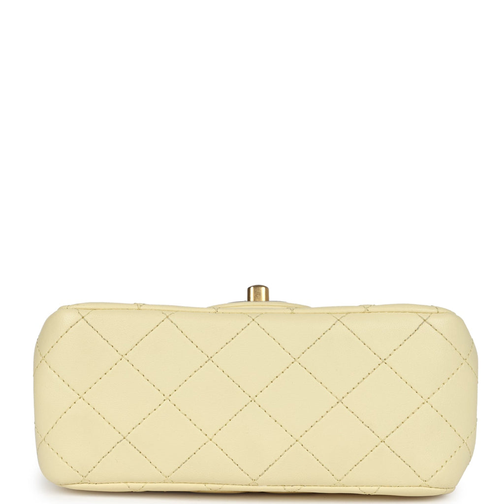 Chanel Mini Camellia Crush Square Flap Yellow Lambskin Antique Gold Hardware