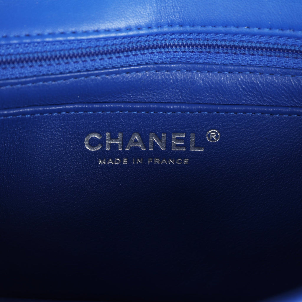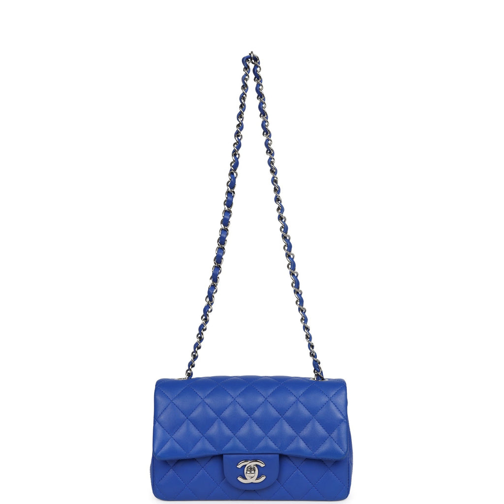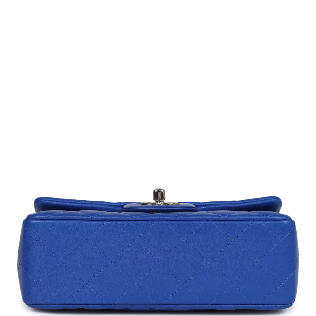 Chanel Mini Rectangular Flap Bag Blue Lambskin Silver Hardware