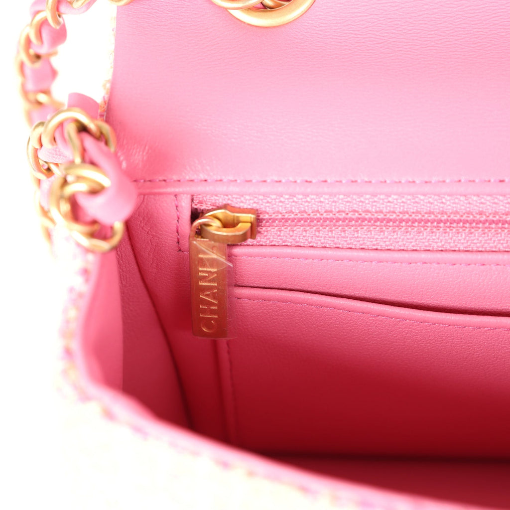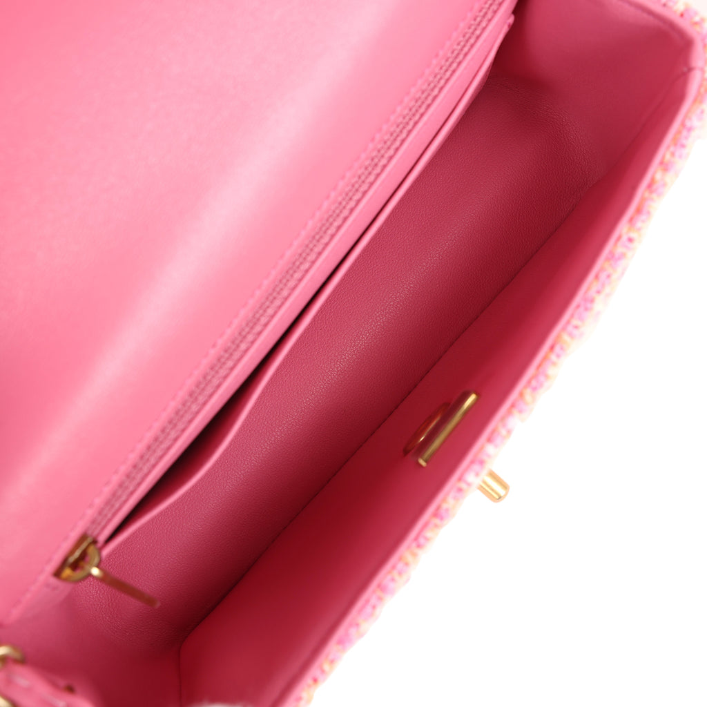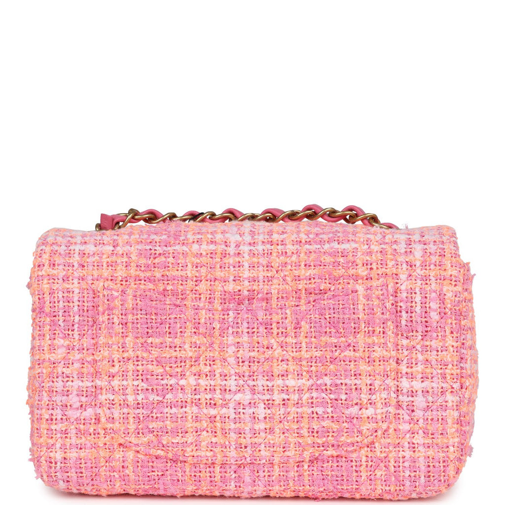 Chanel Mini Rectangular Flap Orange and Pink Tweed Gold Hardware