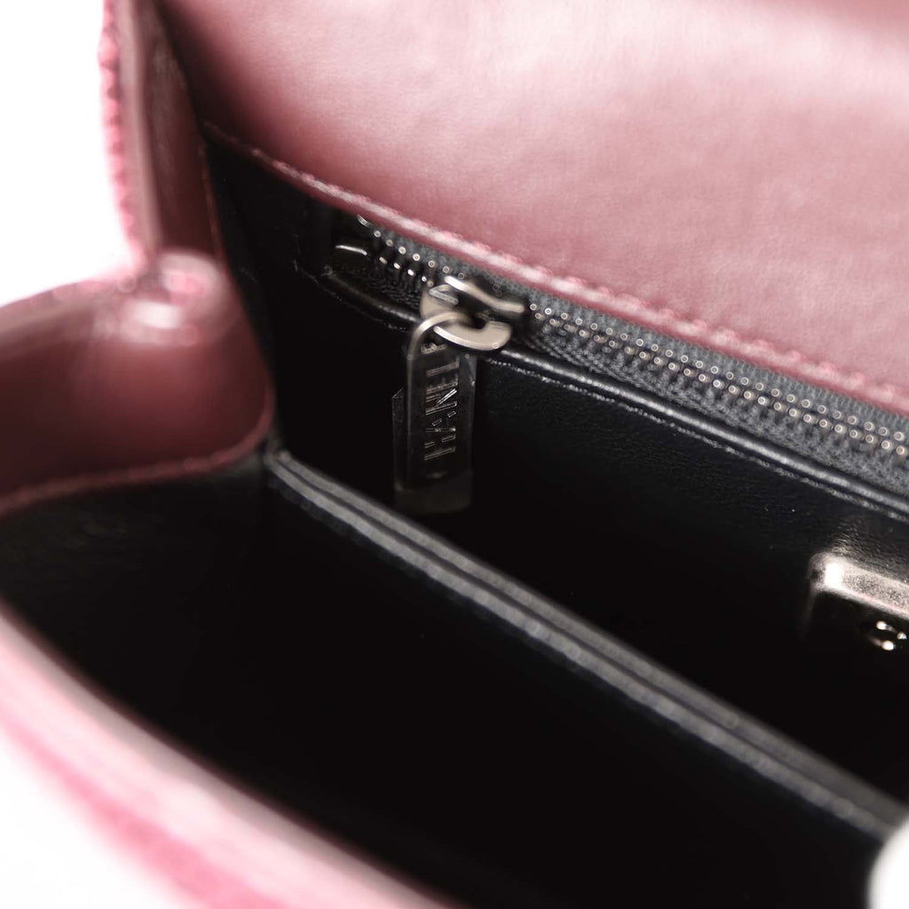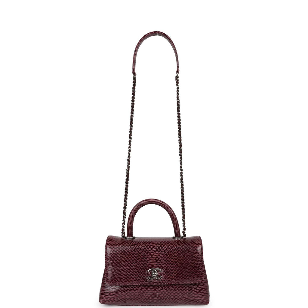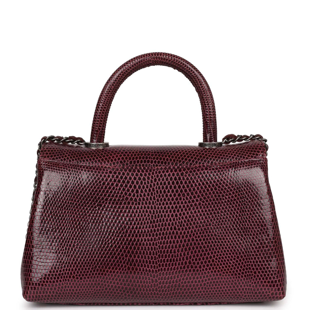 Pre-owned Chanel Mini Coco Handle Burgundy Lizard Ruthenium Hardware