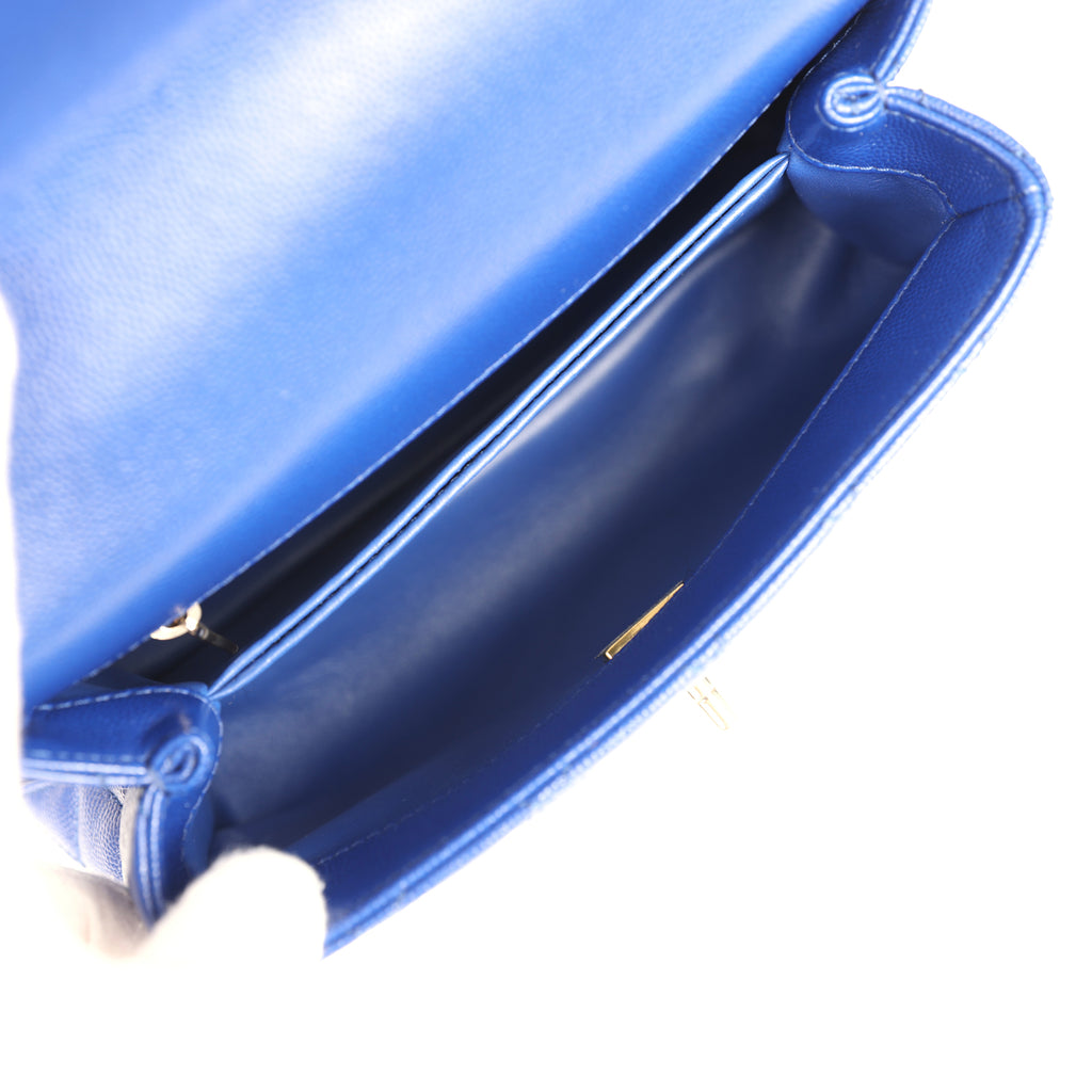 Chanel Mini Coco Top Handle Flap Bag Dark Blue Shiny Caviar Light Gold Hardware