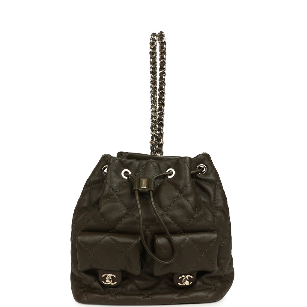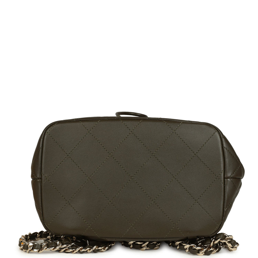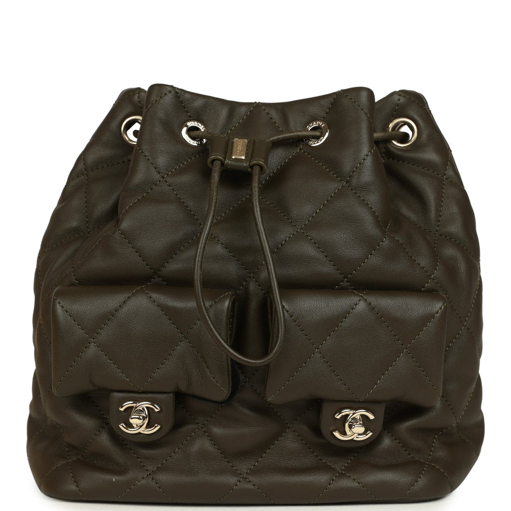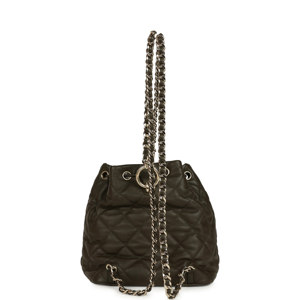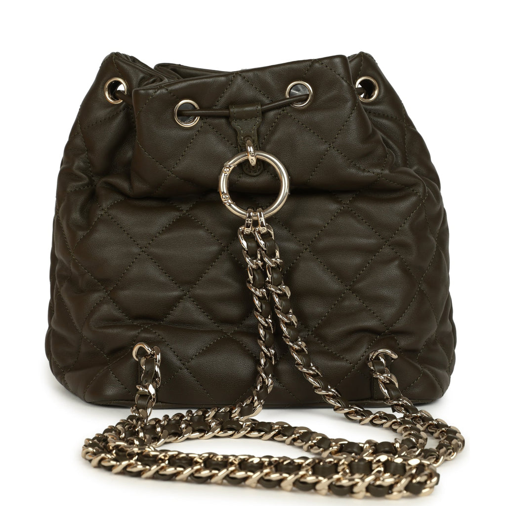 Chanel Mini Duma Drawstring Backpack Khaki Lambskin Light Gold Hardware