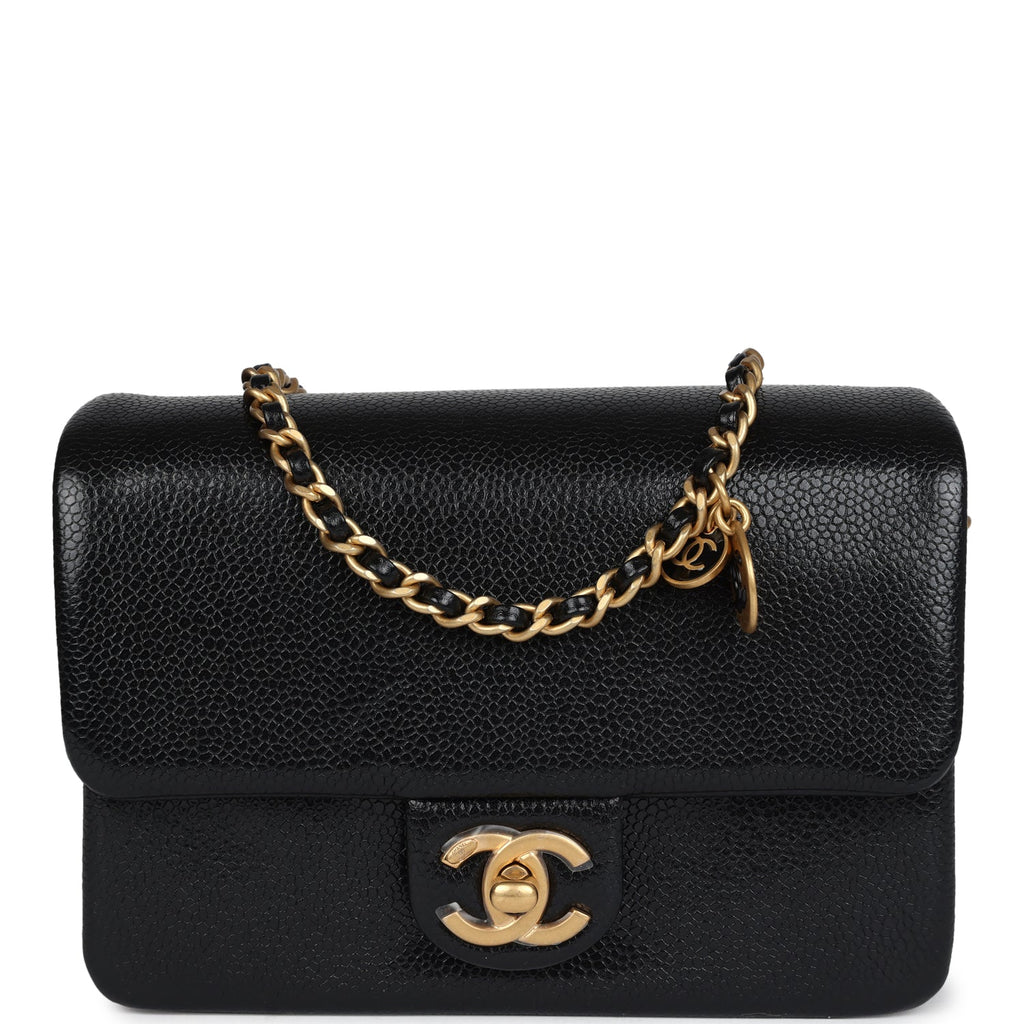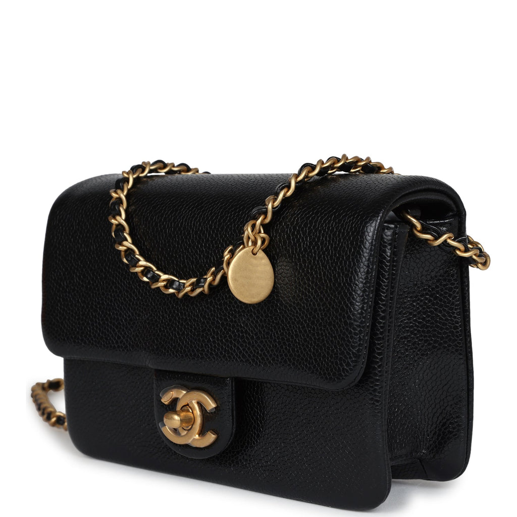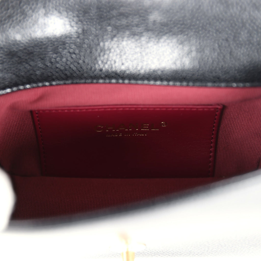 Chanel Mini Flap Bag Black Shiny Caviar Brushed Gold Hardware