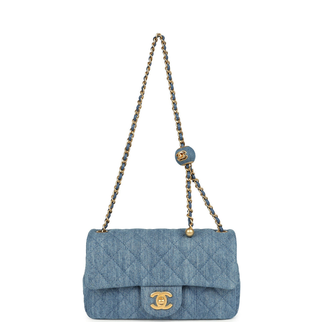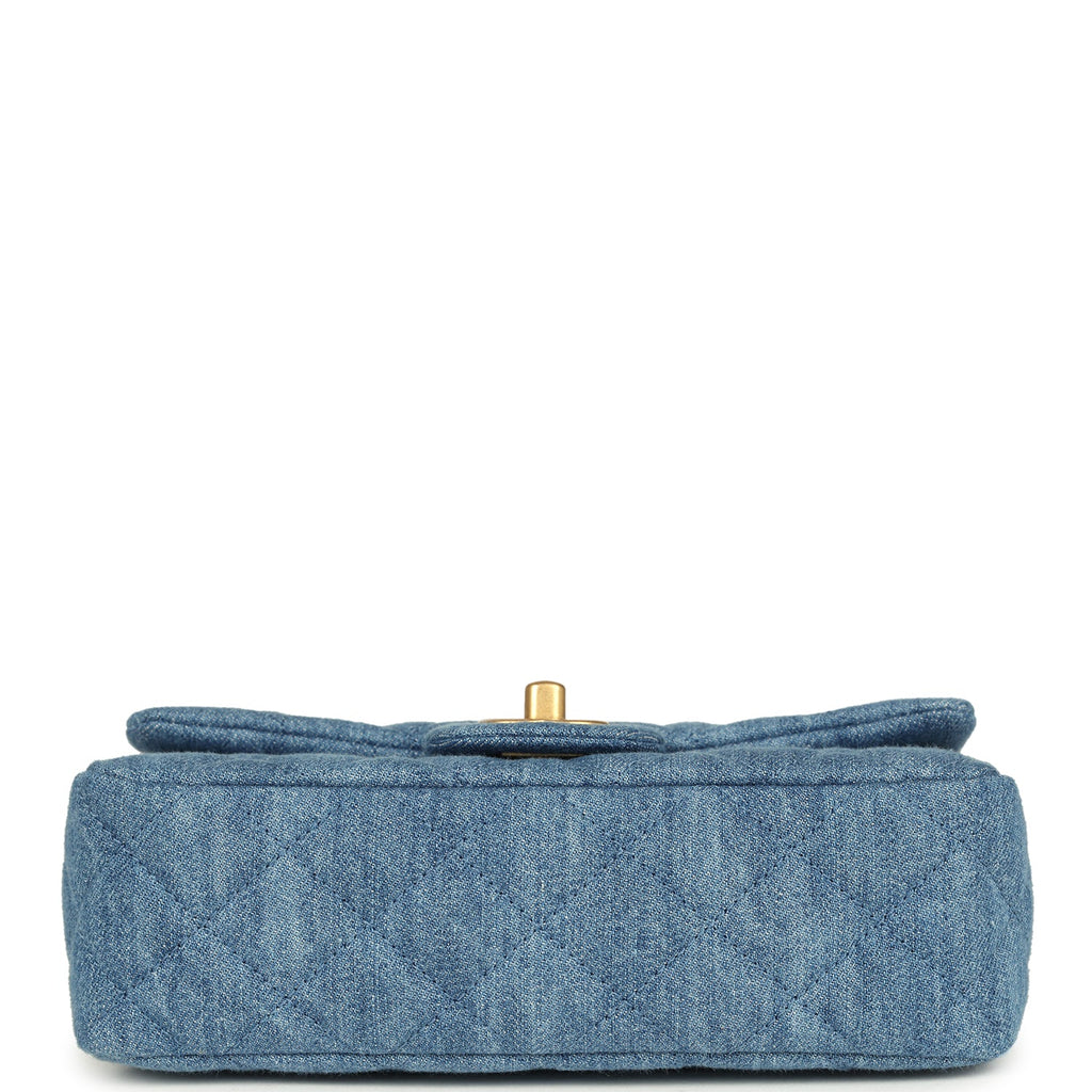 Chanel Mini Pearl Crush Rectangular Flap Bag Blue Denim Brushed Gold Hardware