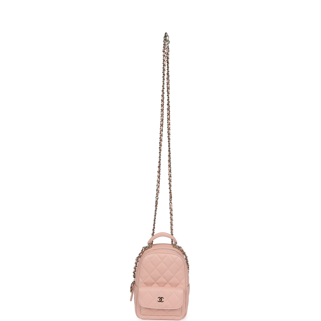 Chanel Mini Phone Holder Backpack with Chain Light Pink Caviar Light Gold Hardware