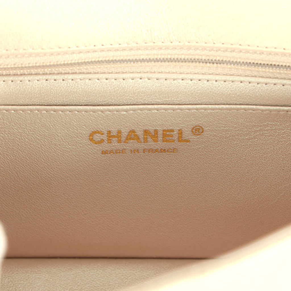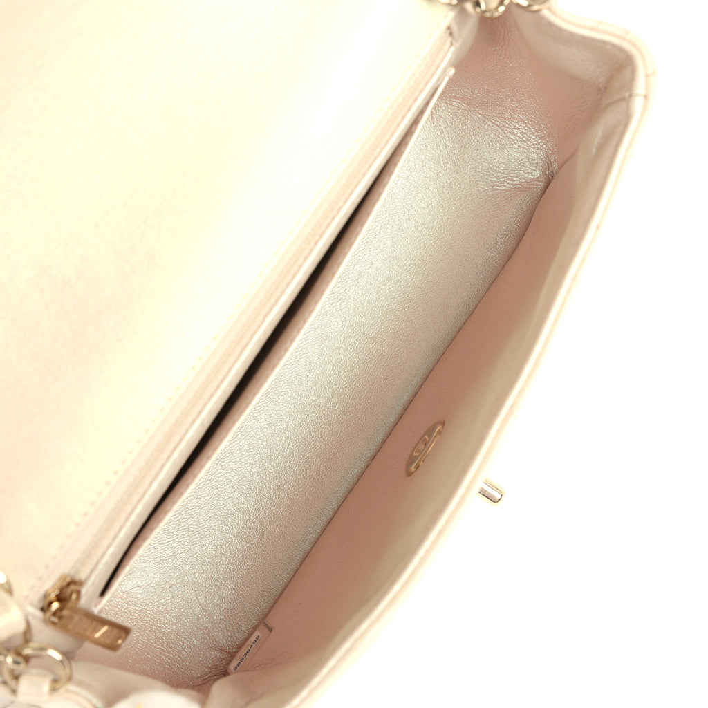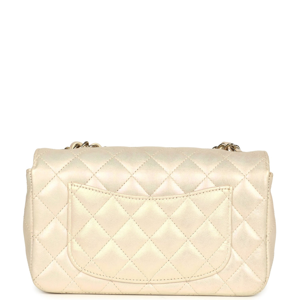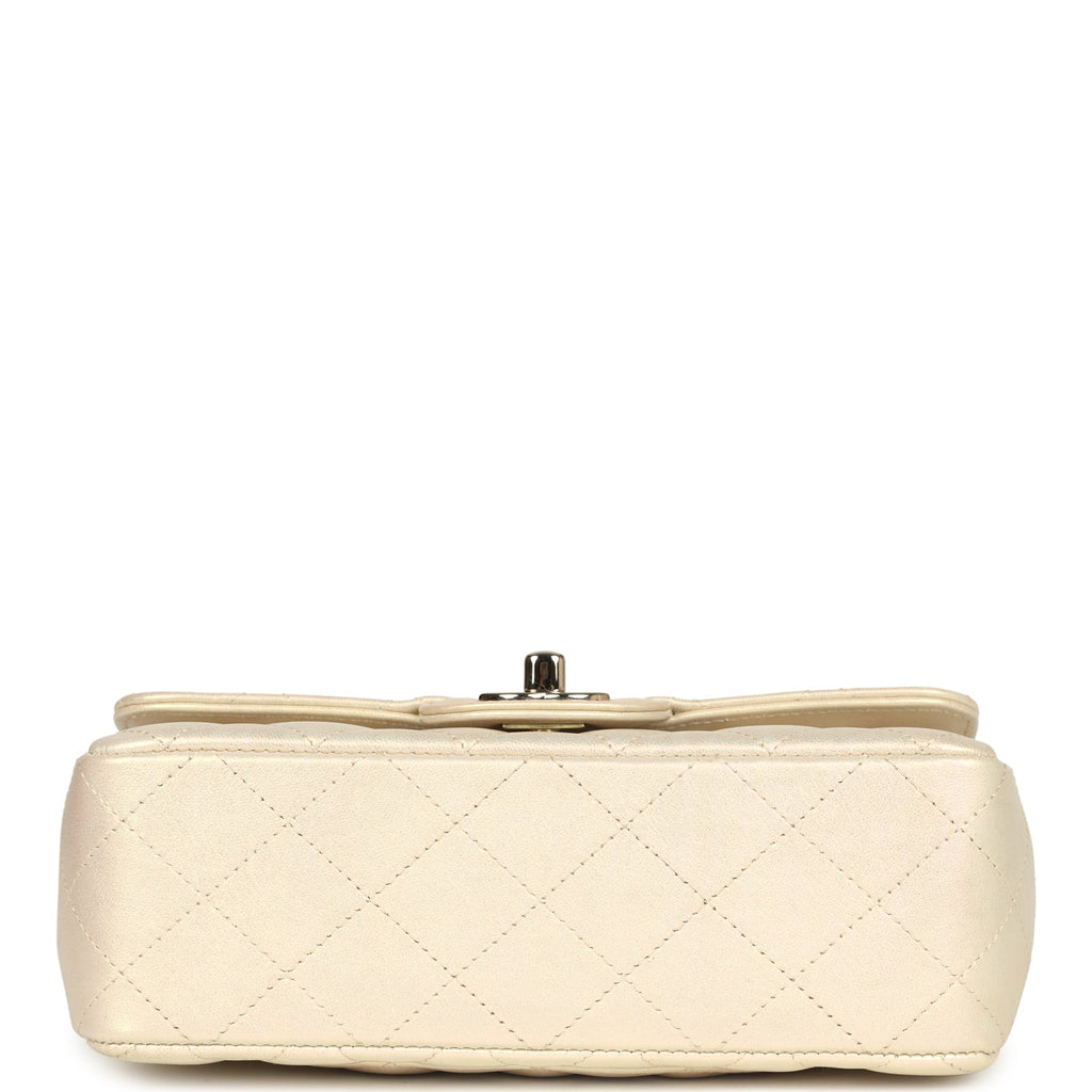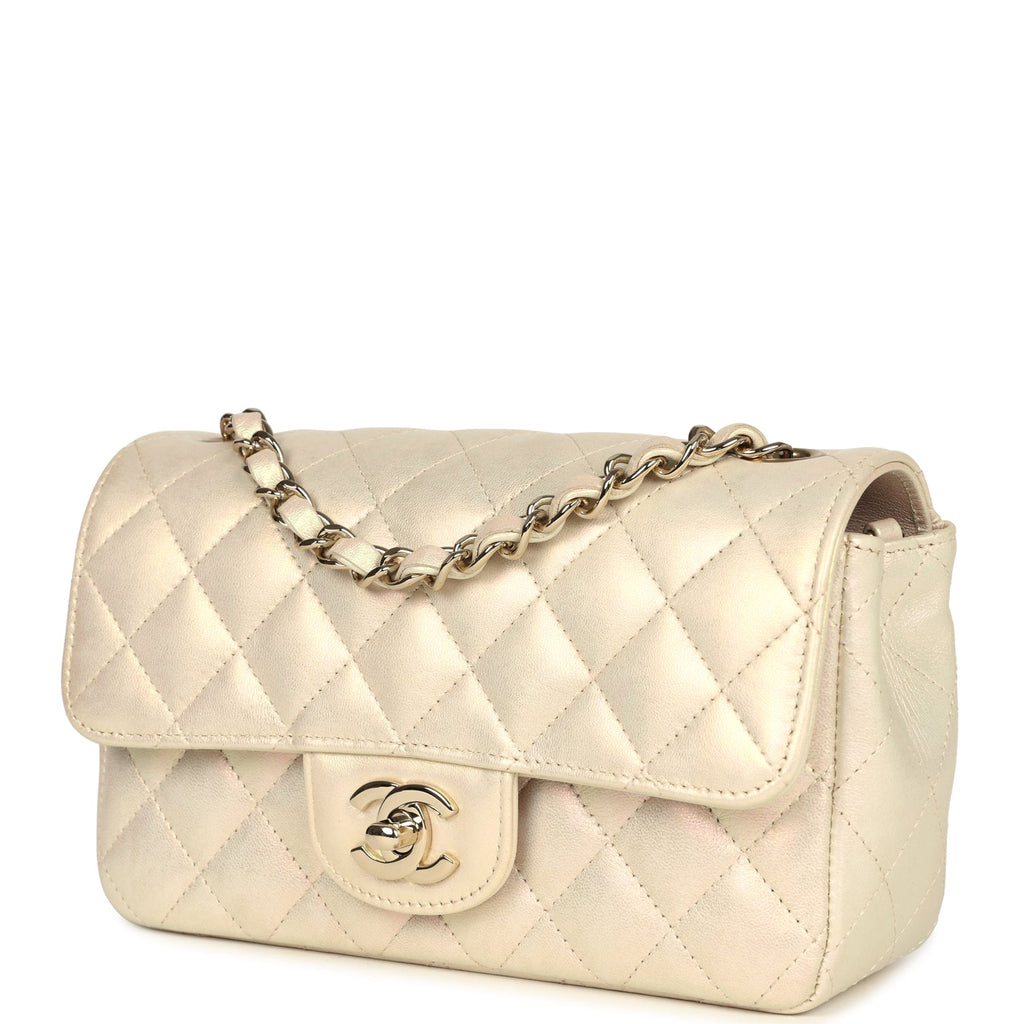 Chanel Mini Rectangular Flap Bag Iridescent Ivory Lambskin Light Gold Hardware