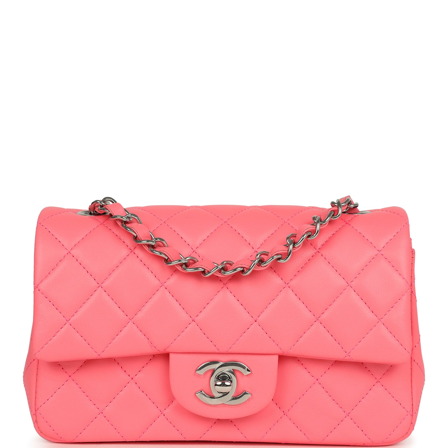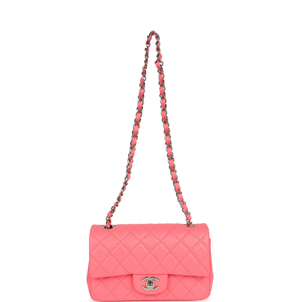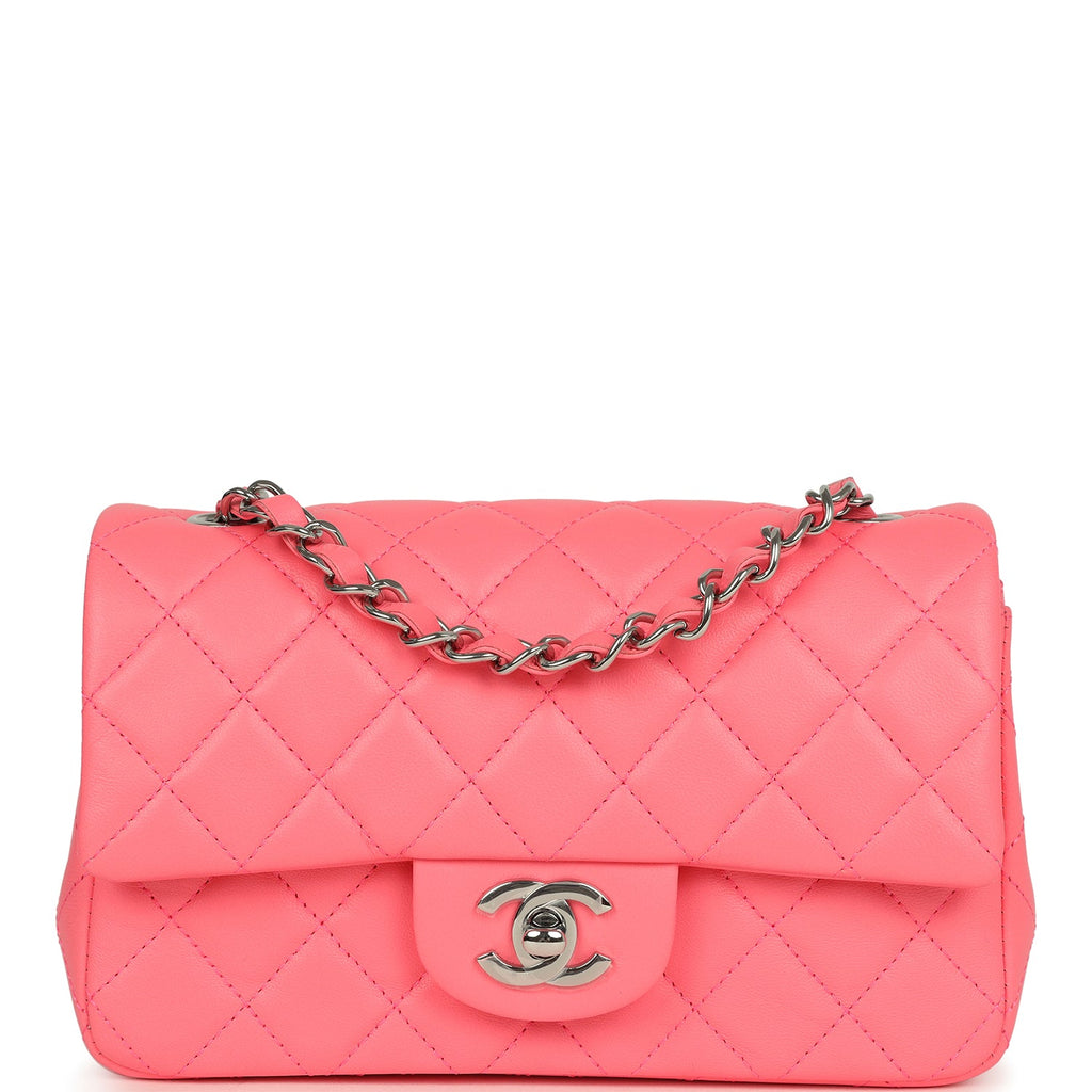 Chanel Mini Rectangular Flap Bag Pink Lambskin Silver Hardware